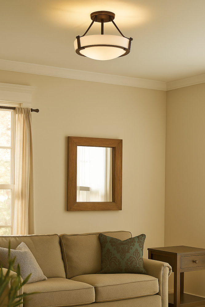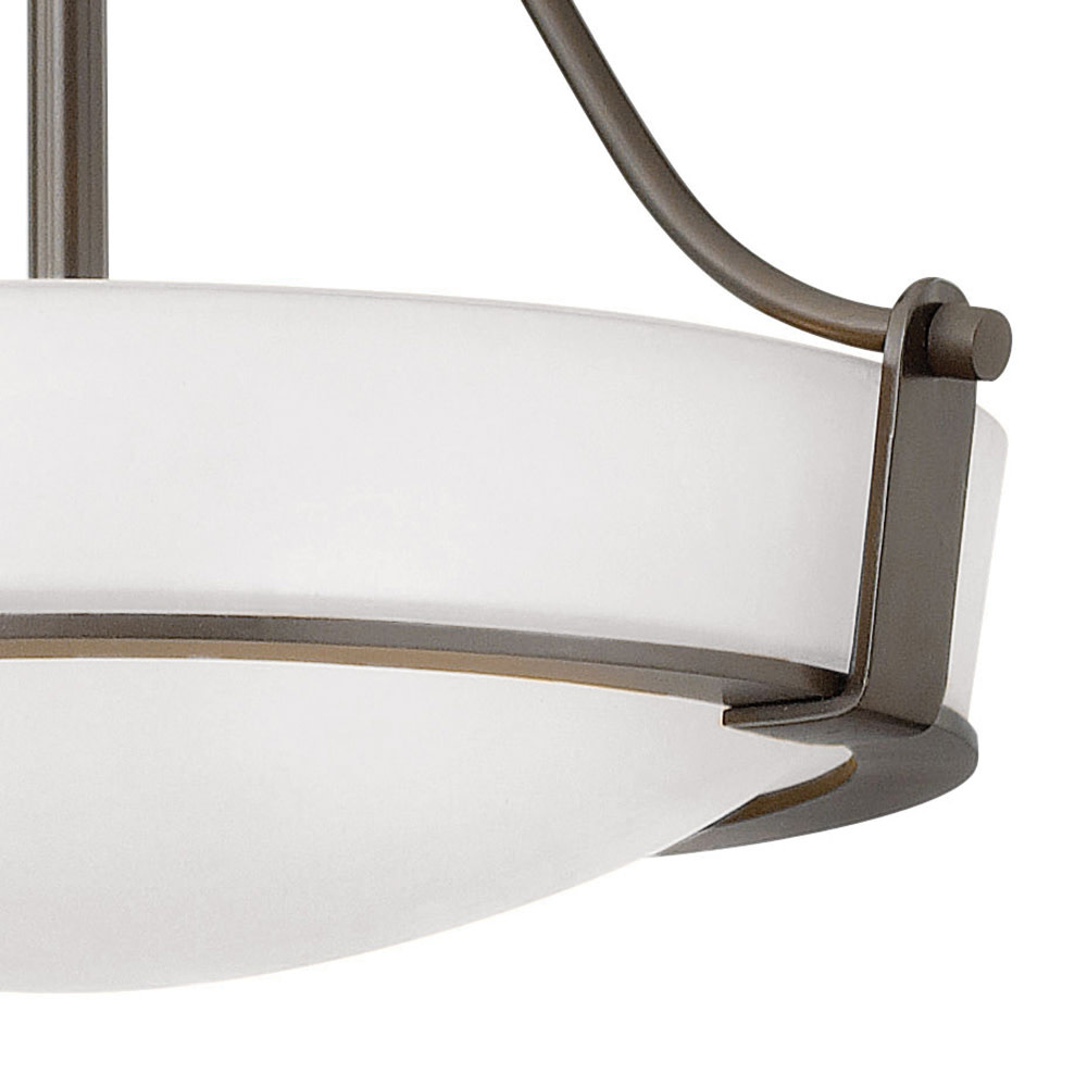 Hathaway’s striking design features a bold shade held in place by three intersecting, floating arms with unique forged uprights and ring detail for a modern style.