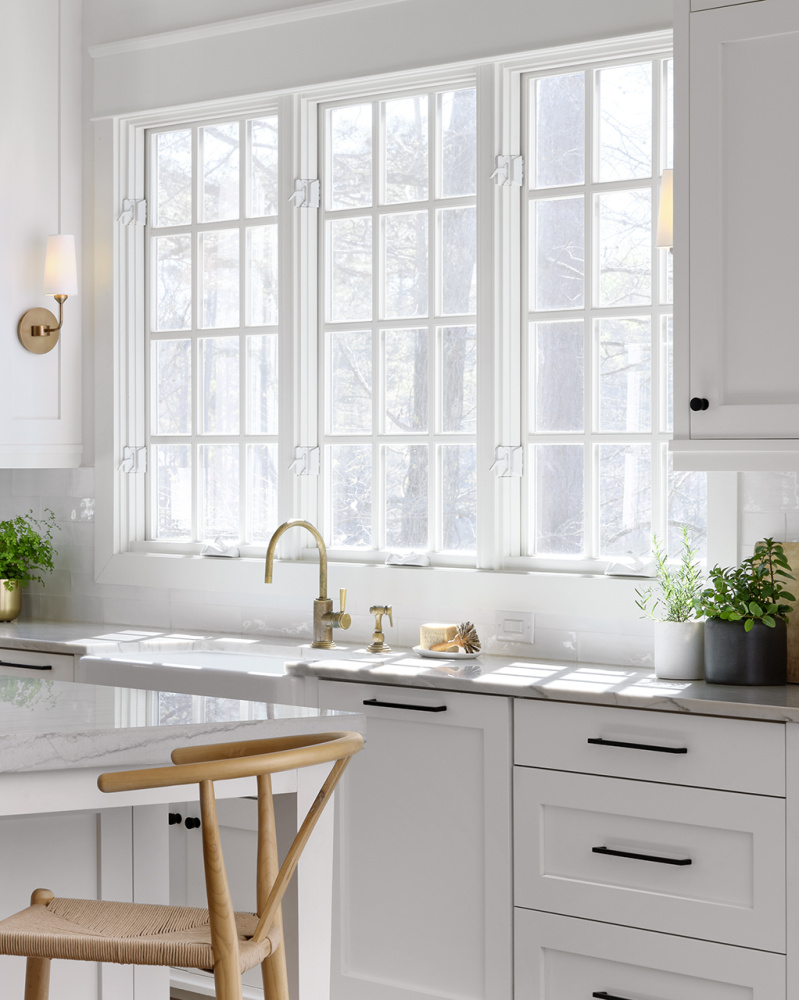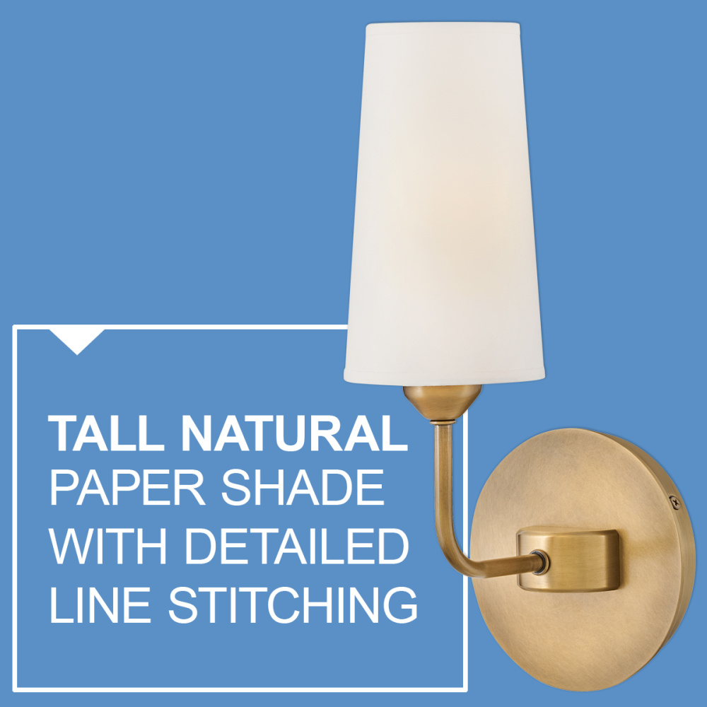 Lewis offers traditional charm paired with updated, transitional elements. Tall natural paper shades feature fine stitching detail against a Heritage Brass or Black Oxide finish to enhance timeless interiors.