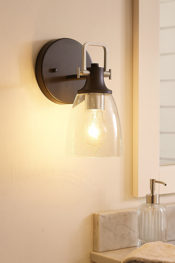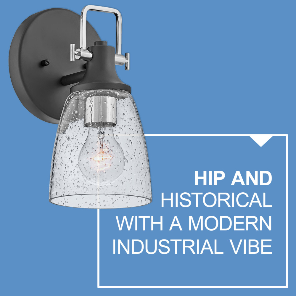 With style elements that blend both hip and historical, Easton exudes a modern industrial vibe. Bold clear seedy glass shades pair with a distinctive top yoke and vintage-inspired knobs for a robust silhouette.