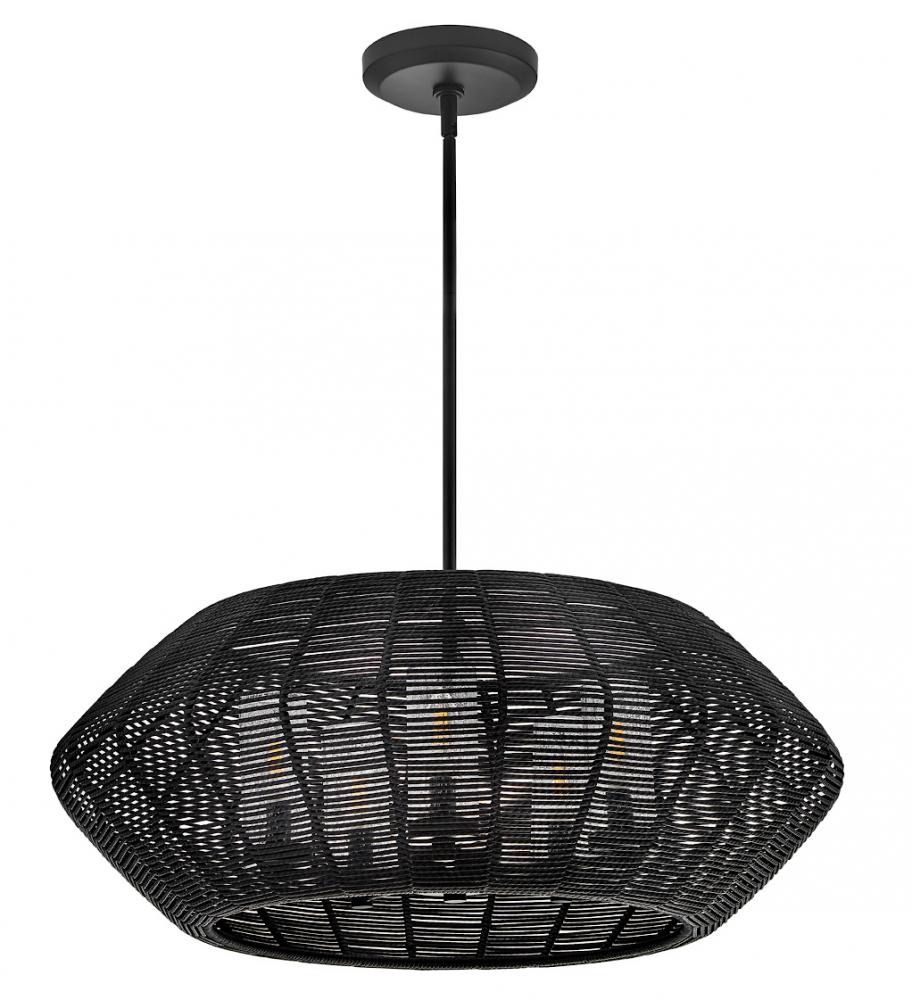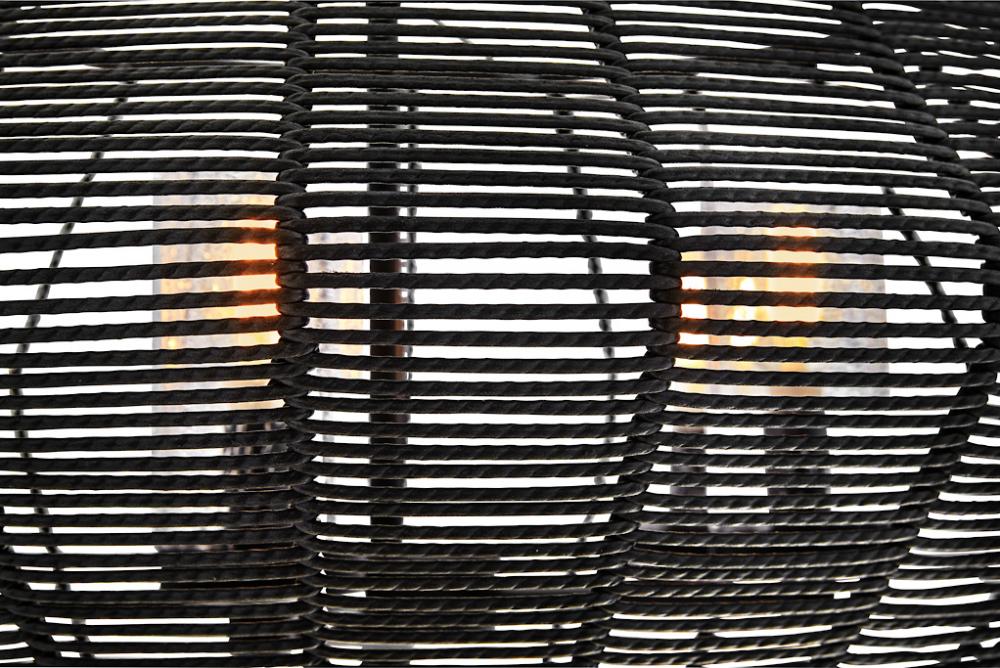 Luca's coastal vibe is permeated with a slightly exotic edge. The bold silhouette showcases a robust, weather-resistant, woven drum shade and candelabra lamps enclosed in clear, seedy glass for plenty of functional light. Offered in a variety of finish options. Luca is part of the Lisa McDennon Collection.