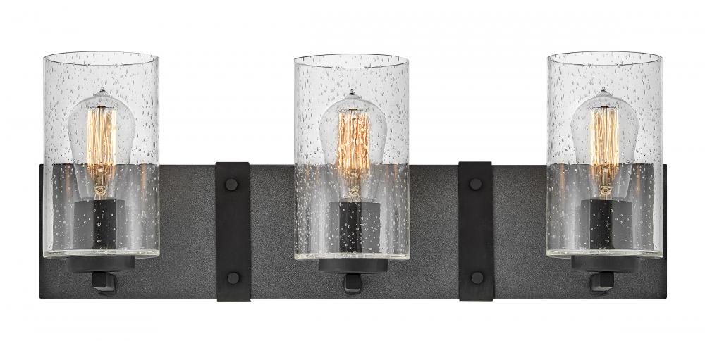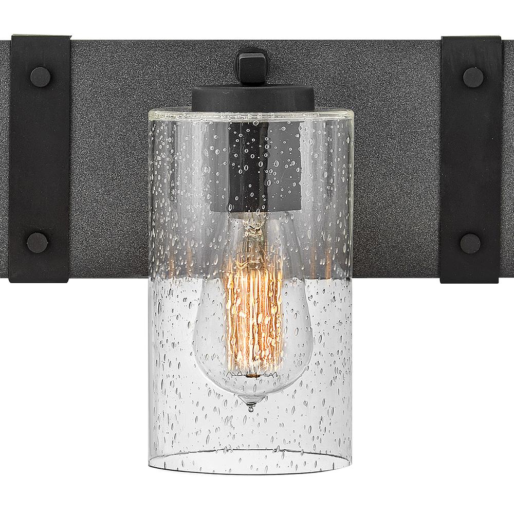 The fresh, rustic design of the Sawyer collection will enhance any living experience with a warm, cozy ambiance. The Aged Zinc finish with Distressed Black accents or Sequoia finish with Iron Rust accents paired with clear seedy glass offer a farmhouse chic style.