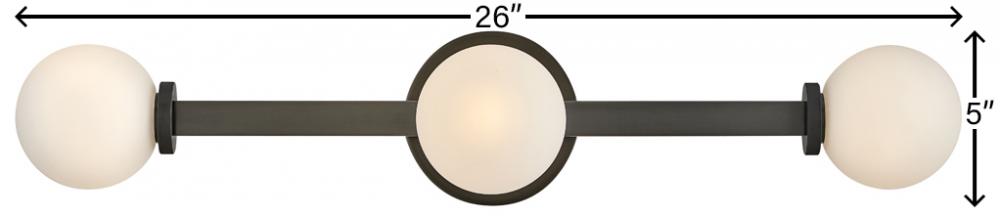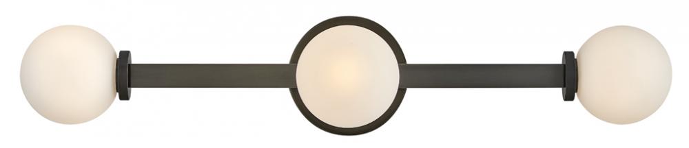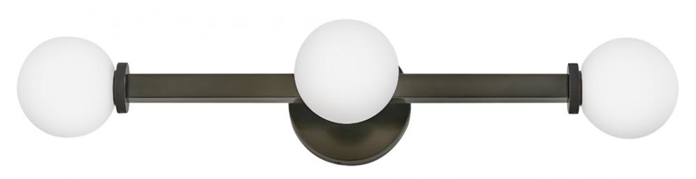 Audrey gives a modern nod to vintage Hollywood vanity lights thanks to luxurious finishes and beautifully knurled details that offset etched opal glass globes. Audrey incorporates the best of both transitional design elements and mid-century-inspired style. Available in Heritage Brass or Black Oxide finish options, this versatile fixture can be mounted horizontally or vertically for added customization.