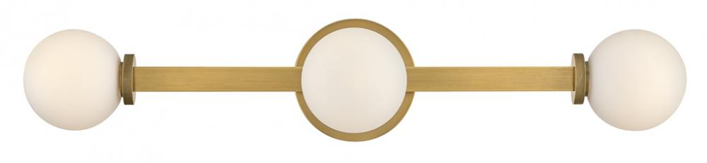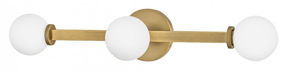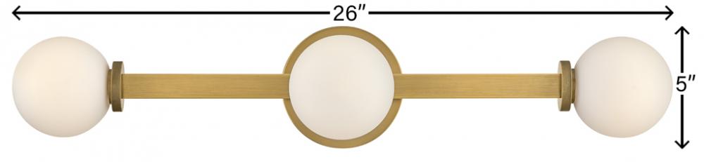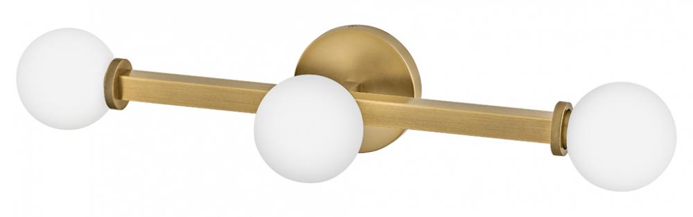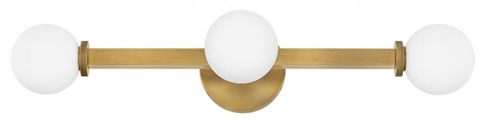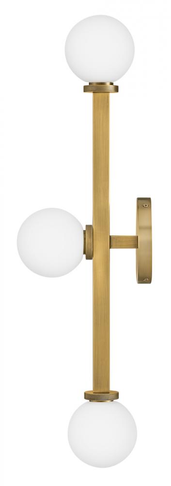 Audrey gives a modern nod to vintage Hollywood vanity lights thanks to luxurious finishes and beautifully knurled details that offset etched opal glass globes. Audrey incorporates the best of both transitional design elements and mid-century-inspired style. Available in Heritage Brass or Black Oxide finish options, this versatile fixture can be mounted horizontally or vertically for added customization.