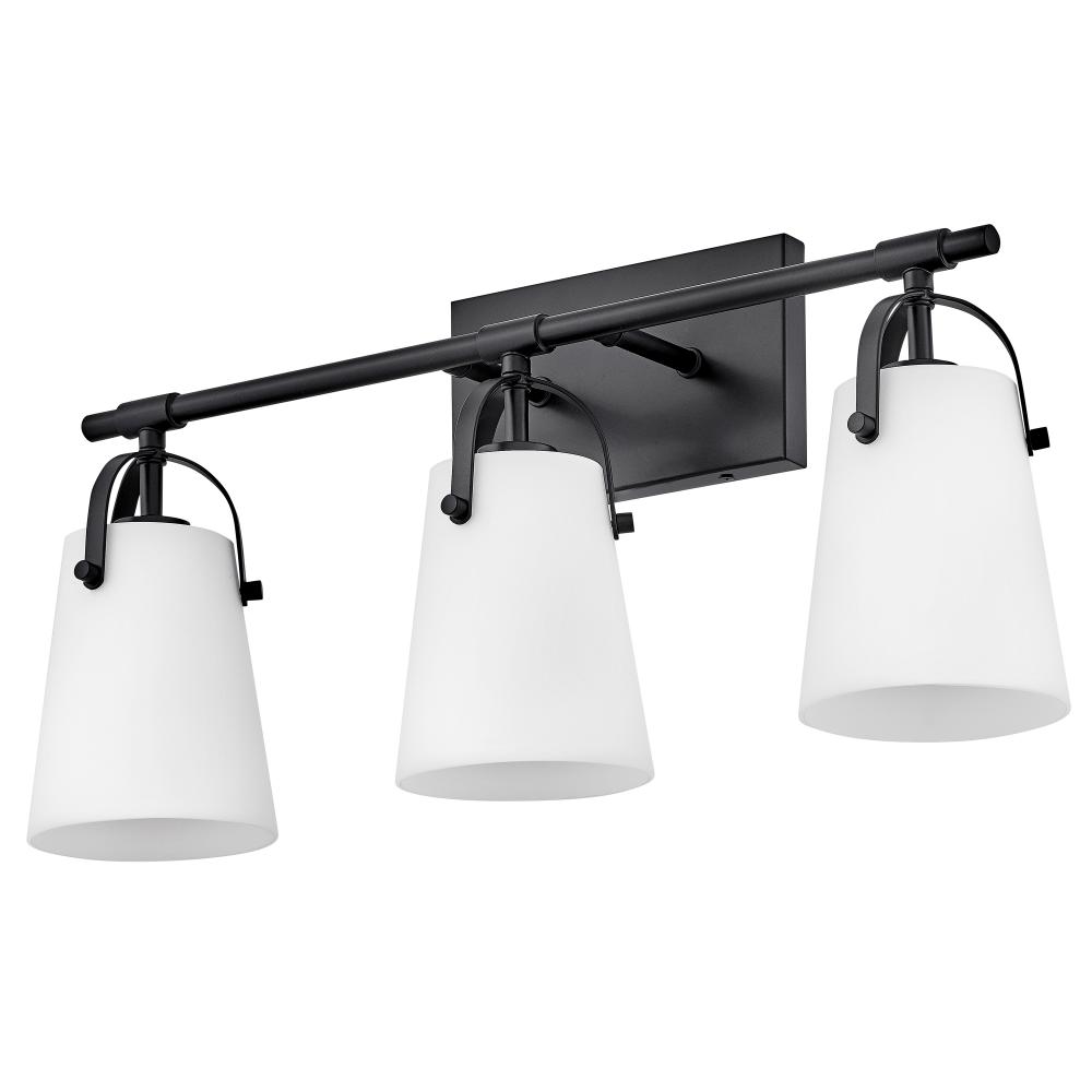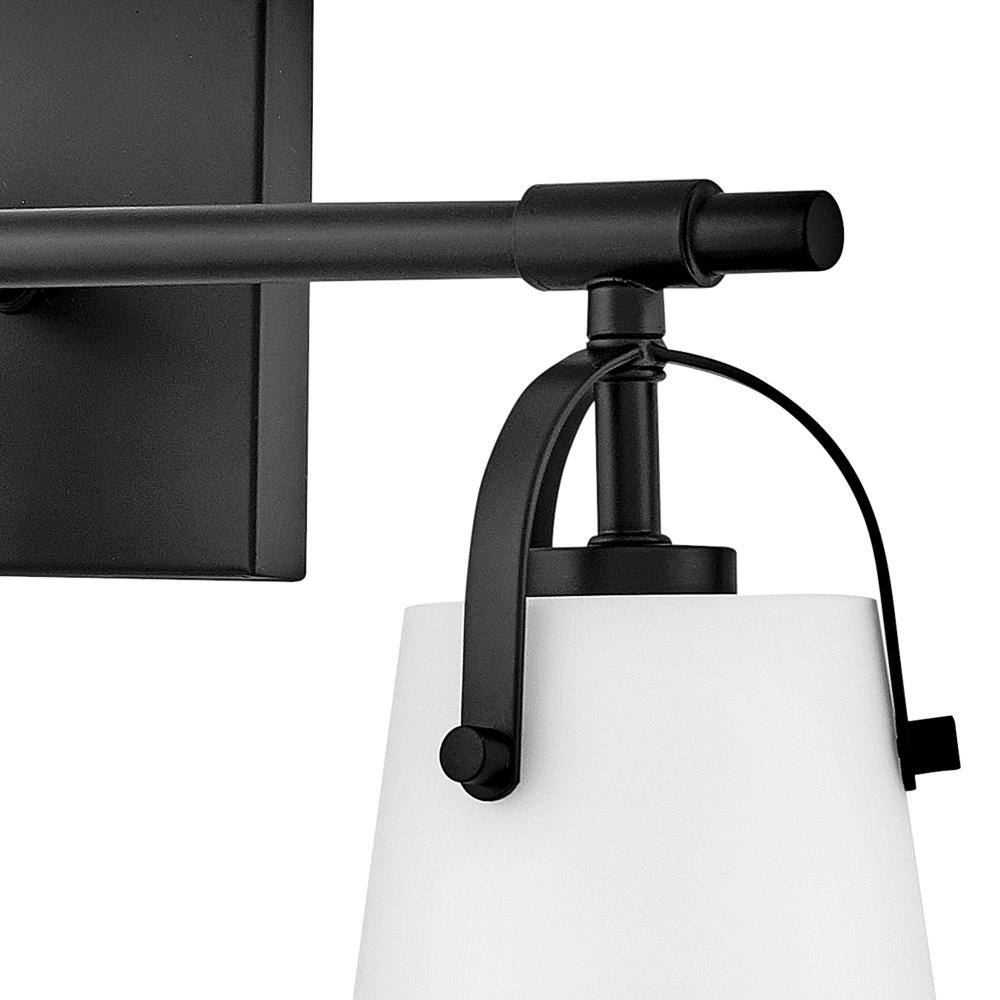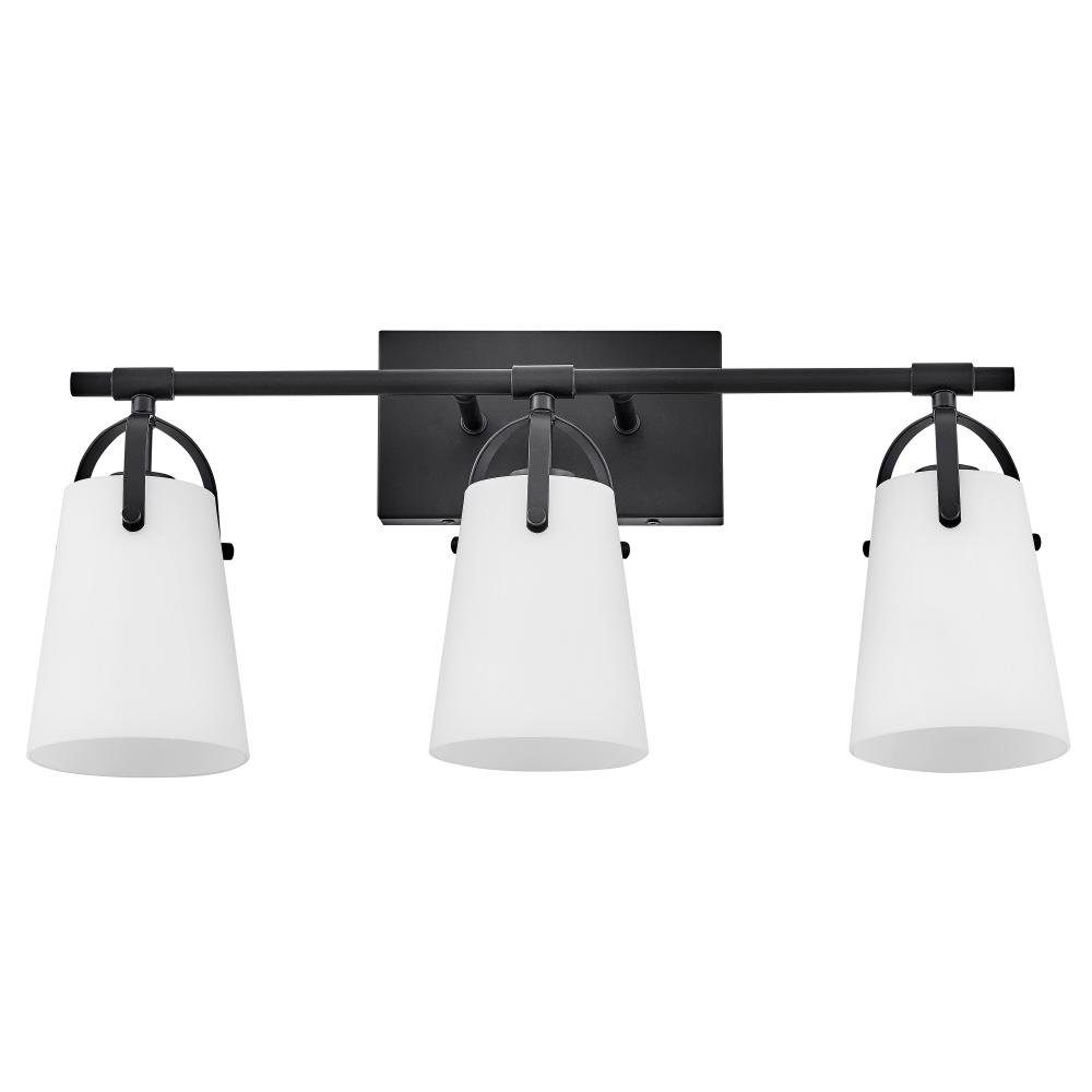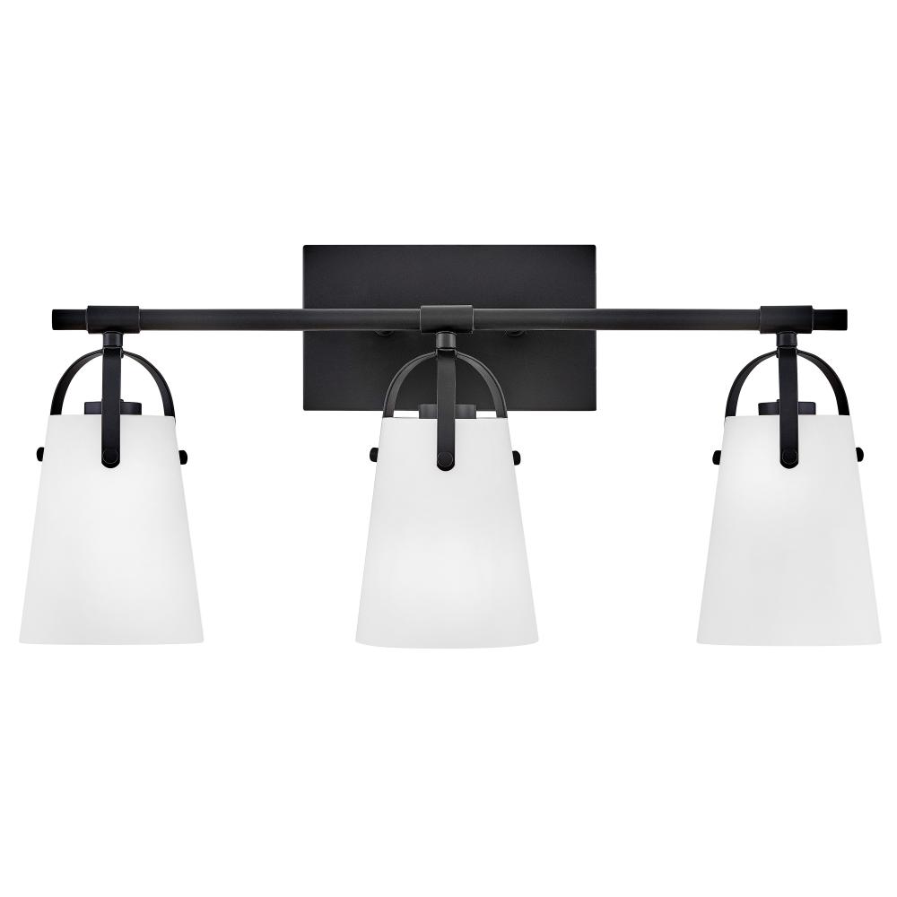 Clean and airy, Foster breathes composed simplicity into any bath space. Softly tapered glass shades suspended from arched handle prongs create a sophisticated transitional silhouette, enhanced by practical yet stylized details.