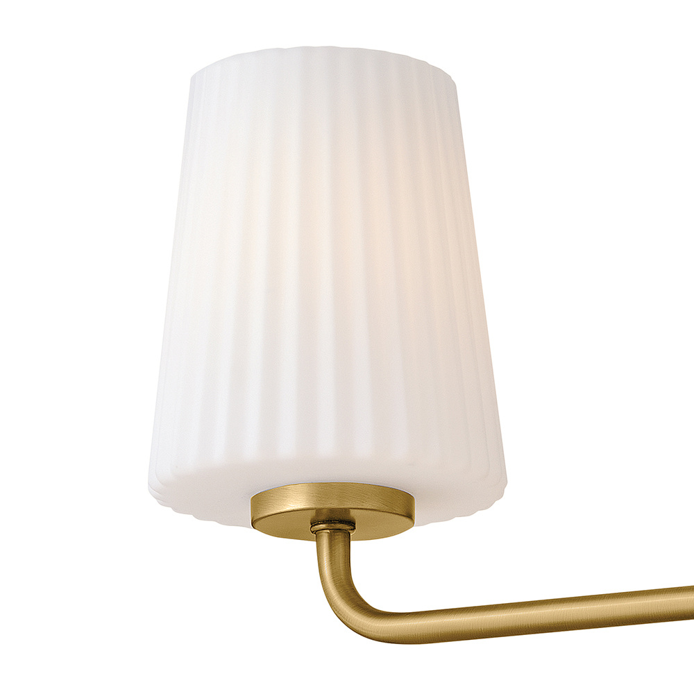 Combining classic elegance with contemporary details, McKenna’s timeless silhouette shines with delicate contours. Pleated Etched Opal glass and beautiful linear details along the frame bring a touch of refinement to your décor.