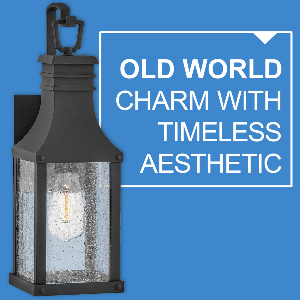 Taking inspiration from an English lantern, Beacon Hill achieves a timeless aesthetic. Part of the Heritage collection, this traditional style features a striking Blackened Copper or Museum Black aluminum frame. The heavily seeded glass pays homage to its Old World charm.