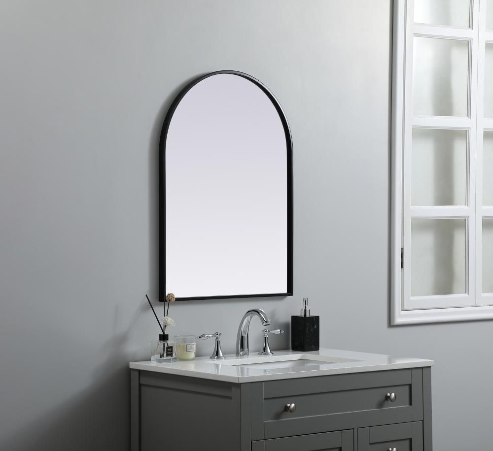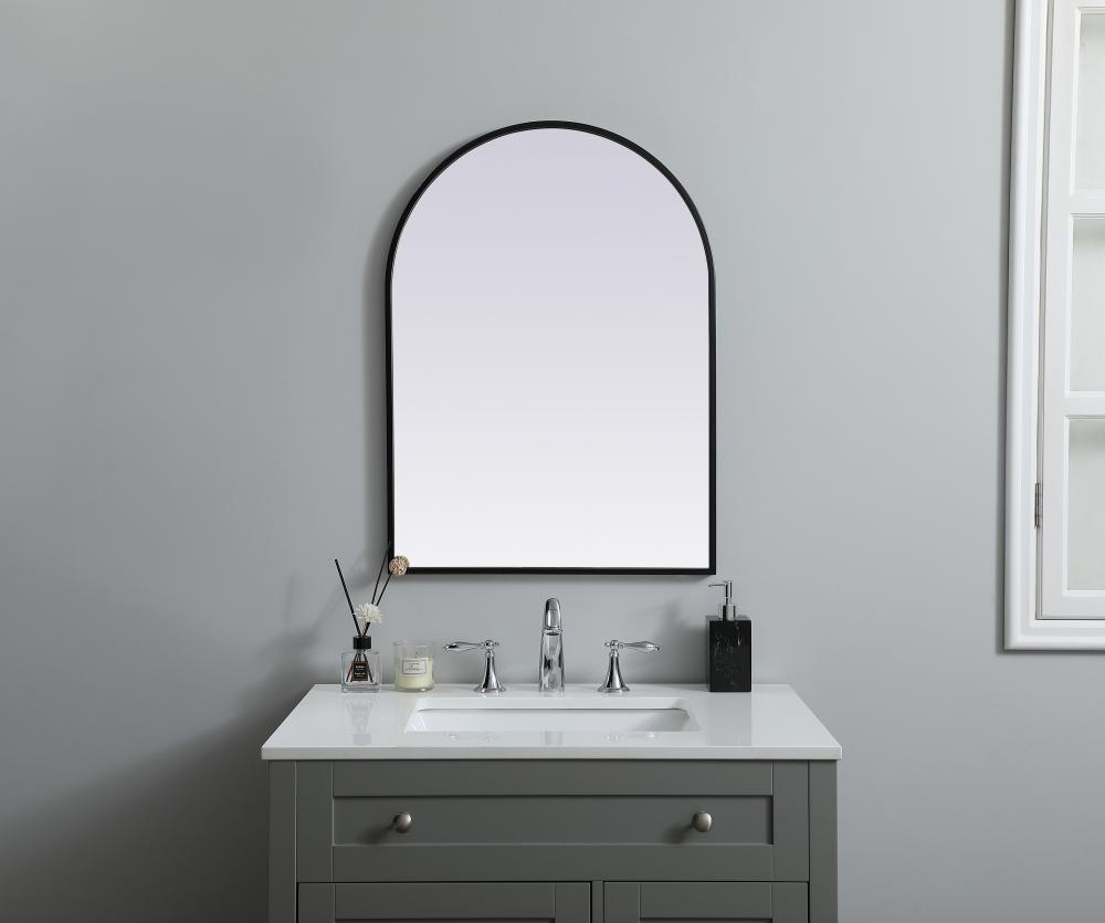 Instantly open up any space in your home with this minimalist wall-mounted mirror. Crafted of metal, this mirror strikes a round silhouette. Its slender, clean-lined frame sports a classic finish, while the glass mirror within features a flat, for a brilliant reflection, letting the light bounce off to expand your space. Designed in an arch shape, this metal-frame mirror showcases in the three available satin finishes in black, brass, or silver. Mount this work of art in any room of your choice for added visual impact.