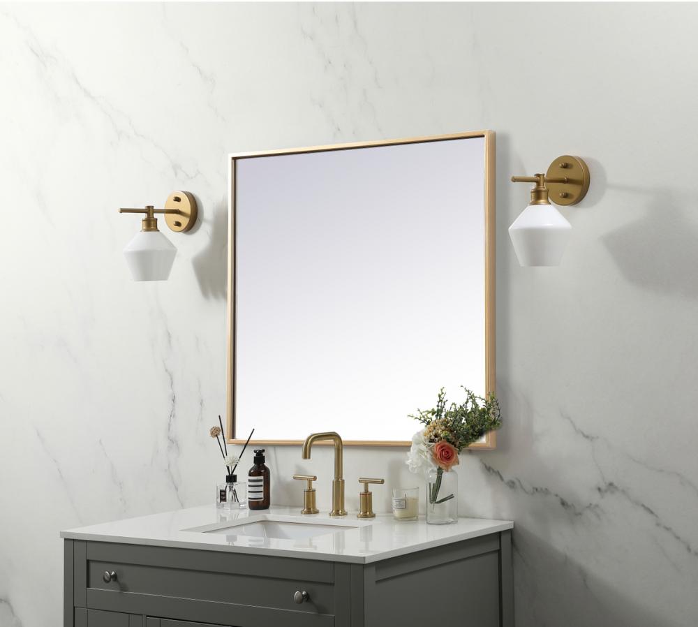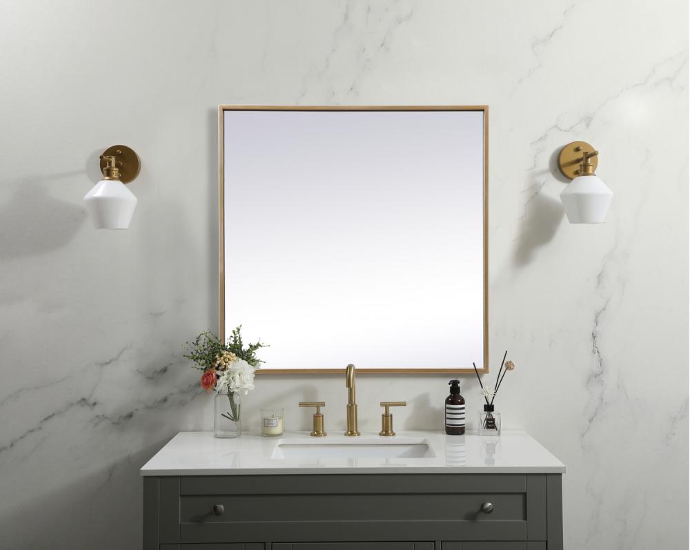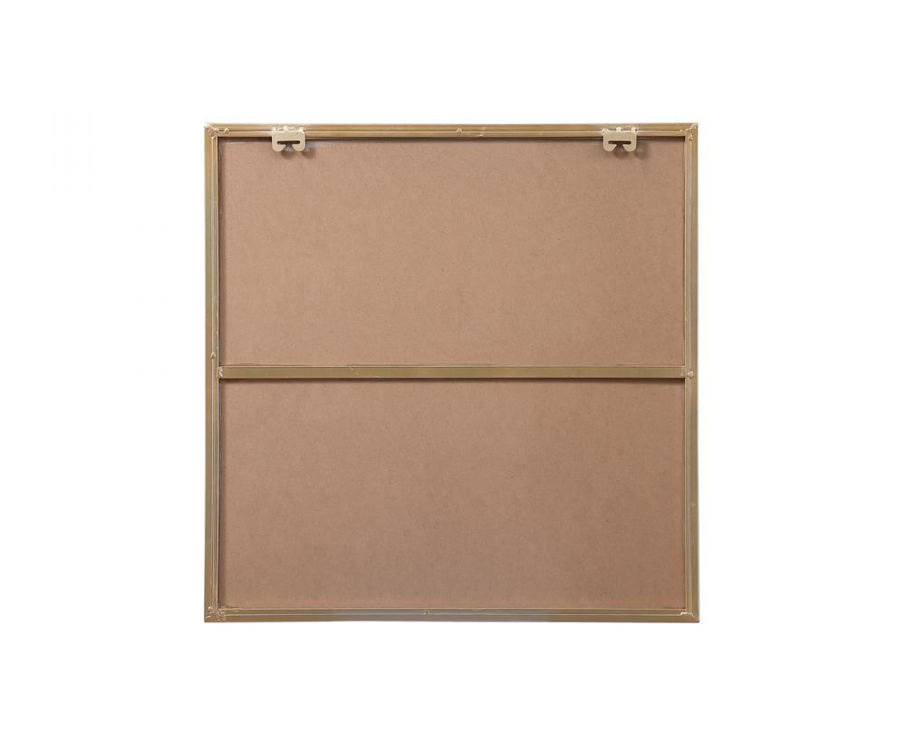 The mirror features a sleek and modern design, making it a stylish addition to any room. The square shape, combined with the iron metal frame, creates a contemporary look.