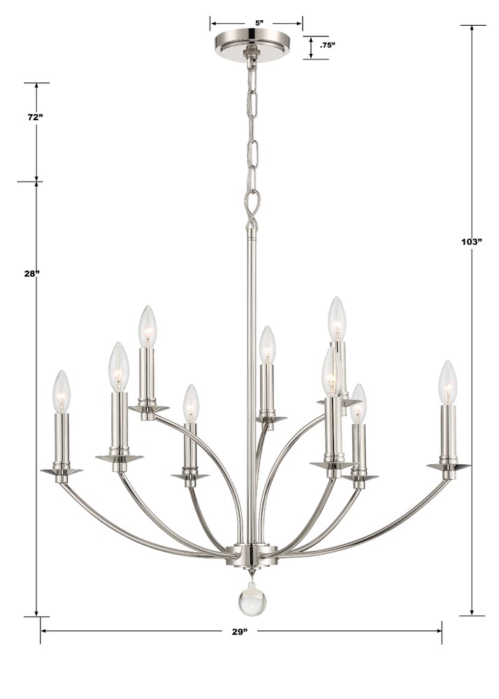9 light 60- watt, E12 Candelabra base