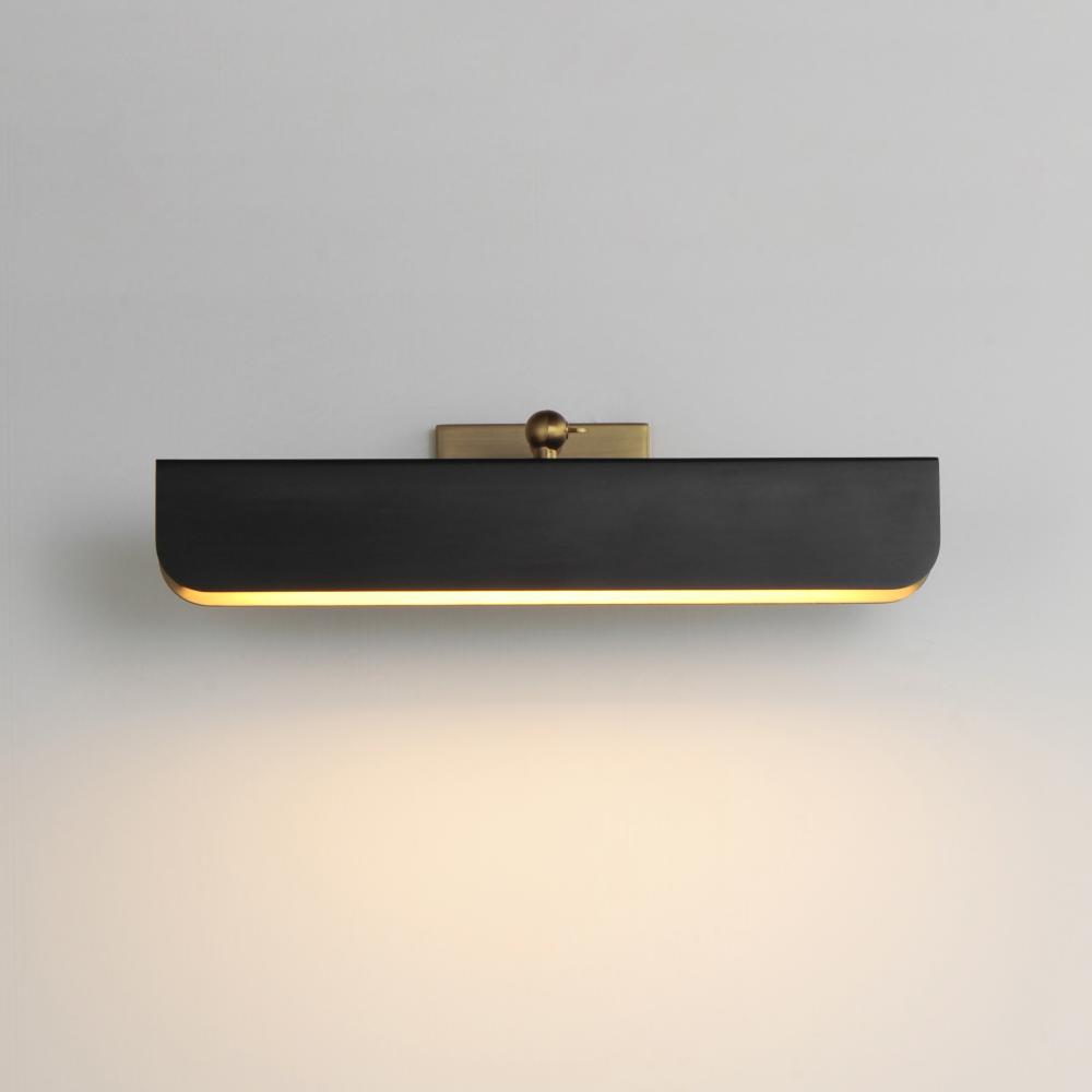 Tapered metal shades are finished in contrasting two-tones of Matte Black and Natural Aged Brass. Dedicated LED light sources cast even lighting across white polycarbonate diffusers. Available in two sizes of flush mount and a dual-plate picture light conf