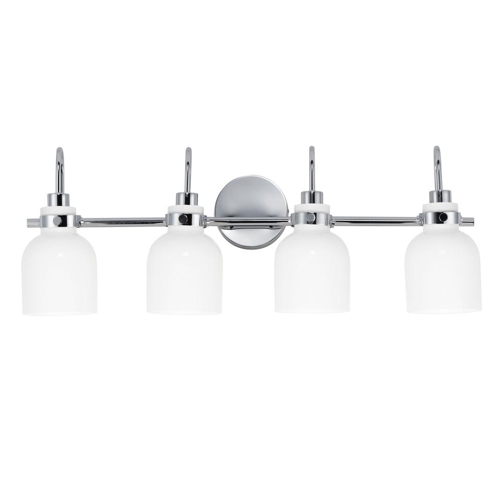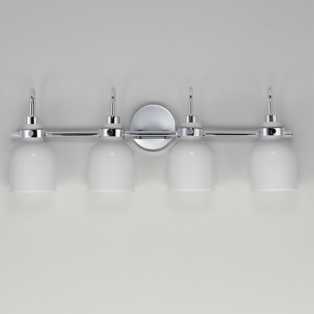 Celebrate nostalgia using these sconces that feature opal White glass shades in a bell shape. Supported on rings of metal in your choice of Polished Chrome or a bolder two-tone Black and Satin Brass, this refreshing take plays into a retro aesthetic of you