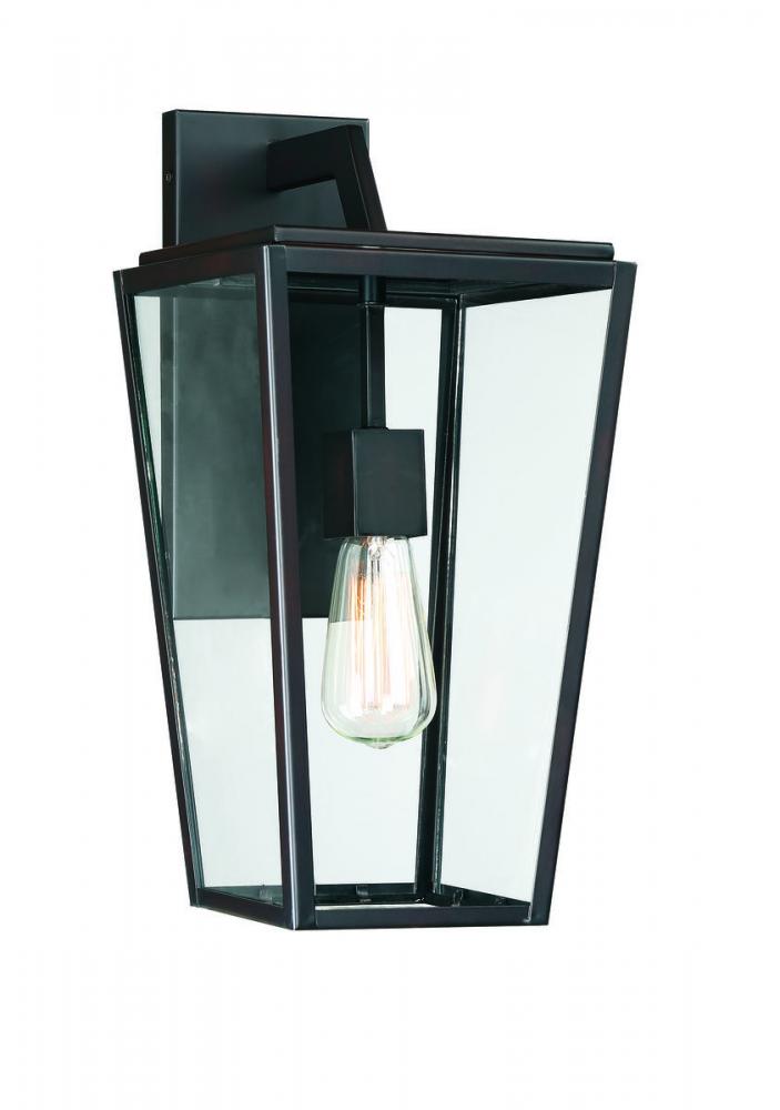 Sleek, contemporary and welcoming light is all yours with the Savoy House Milton 1-light outdoor wall lantern. It’s a fresh, modern take on a classic tapered-box lantern with clean lines and an angular, geometric silhouette. The streamlined frame has a rich English bronze finish and pristine panes of clear glass. It’s an impeccable complement to other hardware and materials on the exterior of your home. Within the lantern panels, one 60W standard size bulb illuminates the area. Milton measures 8" wide and 16.5" high and extends 9.5" from the wall, making it perfect to add chic lighting to the walls of your patio, porch, sunroom or other outdoor living areas. Wet area rated.