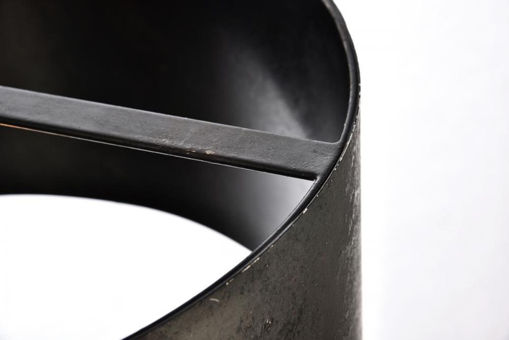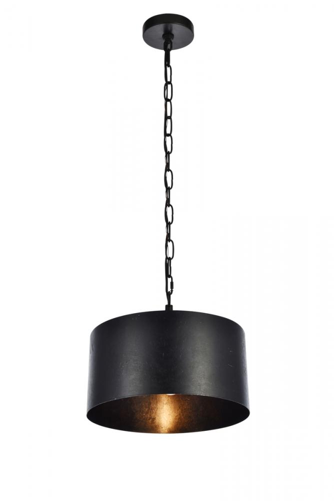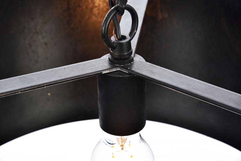 The raw power and audacious simplicity of Miro collection hanging fixtures will lend a commanding presence to your home – especially in a kitchen, living room, office, or studio space. The bold, textured cylindrical shade hangs from a rugged chain and disk-shaped mounting plate. Three exposed bulbs (Not included) hang from a hidden internal crosspiece and create a curious effect on the color of the interior. Available in a vintage-Black or manual-brass finish with two size options.