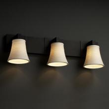 This Three Light Vanity has a Bronze Finish and is part of the Modular Collection. It is Damp Rated.