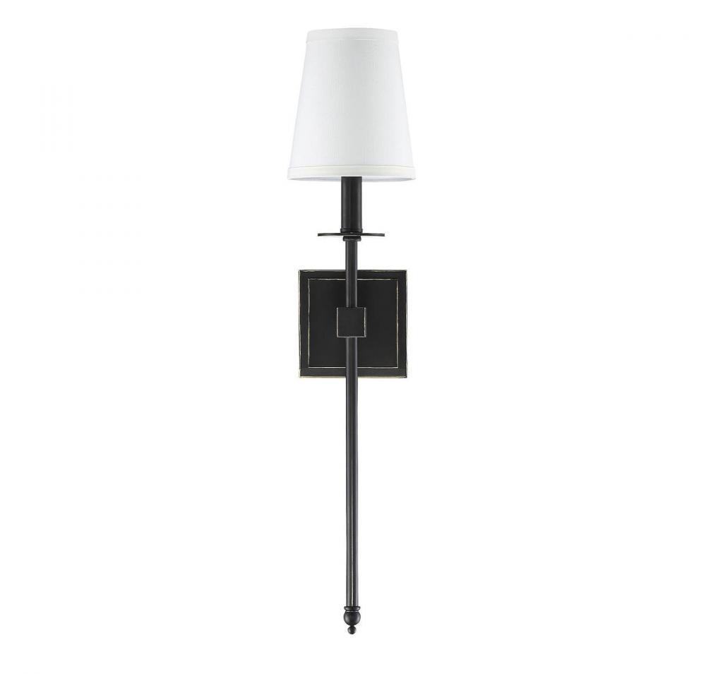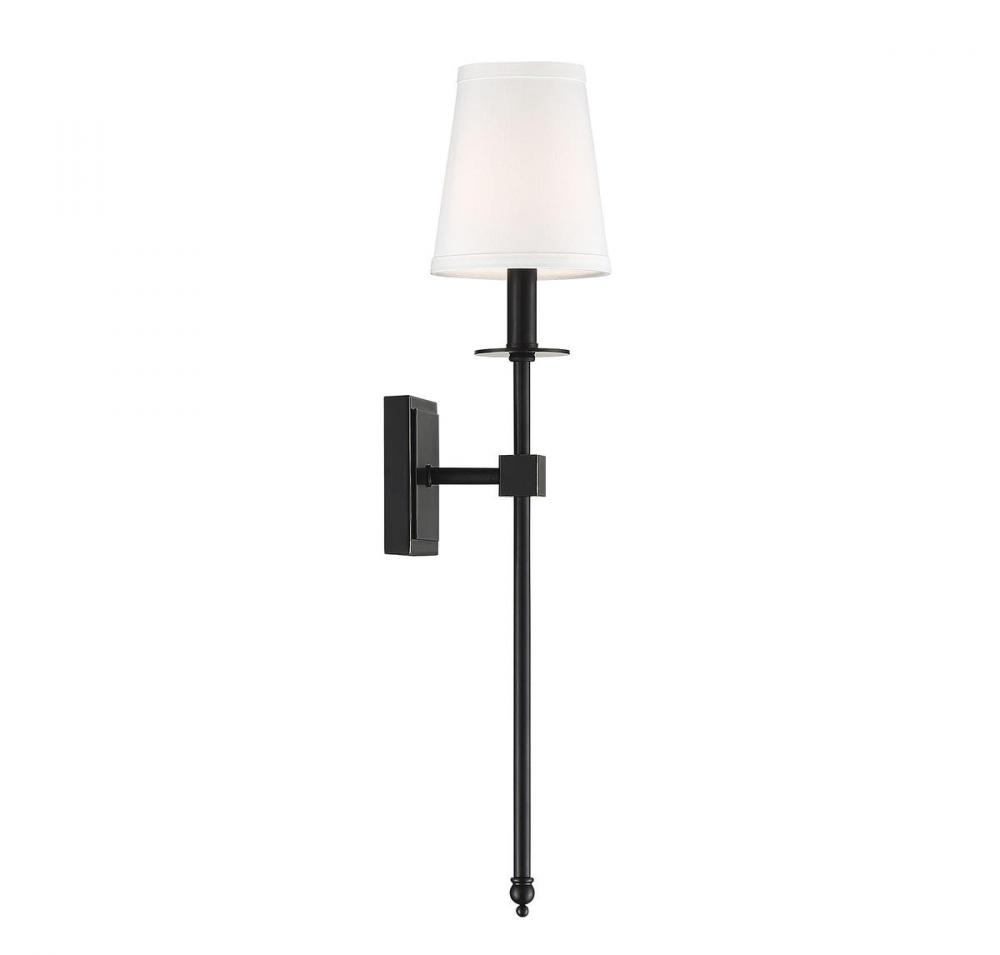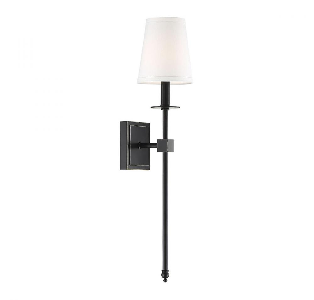 This Savoy House Monroe 1-light sconce features a long sleek body, a white fabric shade and a classy, contemporary silhouette. Classic bronze finish. Sconces add a touch of style and light to any wall, including but certainly not limited to hallways, entryways, stairways, great rooms and dining rooms. You will also often see a pair of sconces flanking a bathroom vanity mirror to provide an even, flattering wash of light. Bulb not included. The classic bronze finish can be paired with bronze hardware or mixed with hardware in other finishes. Monroe is a perfect addition to rooms of any style, especially transitional or classic. When you choose a Savoy House lighting fixture, you can be certain you’ve selected a piece that will withstand the test of time.