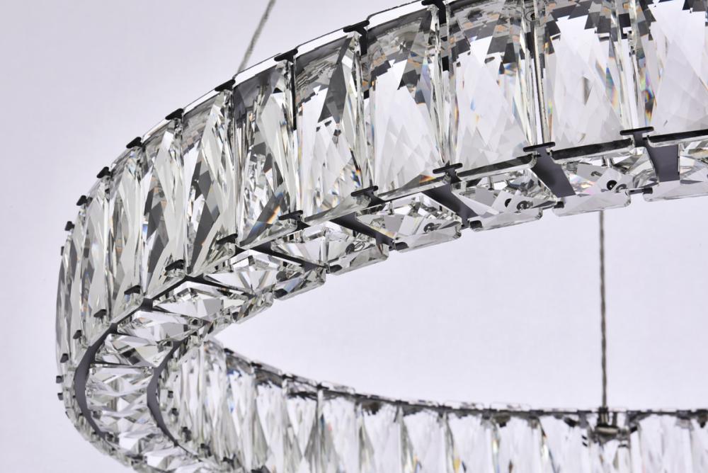 Diamonds are a girl’s best friend, and sparkling Monroe collection hanging fixtures take Marilyn’s famous lines to heart … for women and men alike. A minimal stainless-steel frame becomes dazzling when it is covered entirely with rectangular and square spectacularly faceted clear crystals. The oblong design hangs from almost invisible wires with brilliant integrated LED shining unseen from within. Stunning when placed in a dining room, kitchen, living room, or bedroom.