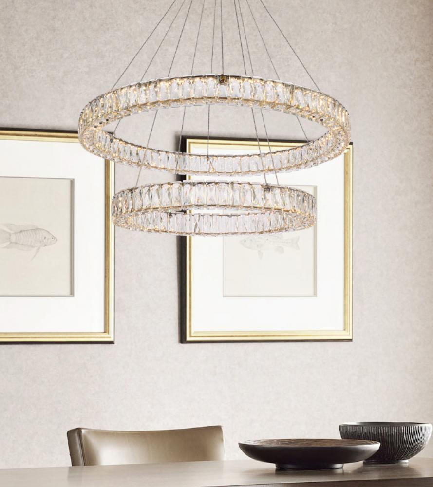 Diamonds are a girl’s best friend, and sparkling Monroe collection hanging fixtures take Marilyn’s famous lines to heart … for women and men alike. A minimal stainless-steel frame becomes dazzling when it is covered entirely with rectangular and square spectacularly faceted clear crystals. The oblong design hangs from almost invisible wires with brilliant integrated LED shining unseen from within. Stunning when placed in a dining room, kitchen, living room, or bedroom.