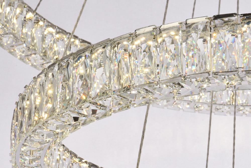 Diamonds are a girl’s best friend, and sparkling Monroe collection hanging fixtures take Marilyn’s famous lines to heart … for women and men alike. A minimal stainless-steel frame becomes dazzling when it is covered entirely with rectangular and square spectacularly faceted clear crystals. The oblong design hangs from almost invisible wires with brilliant integrated LED shining unseen from within. Stunning when placed in a dining room, kitchen, living room, or bedroom.