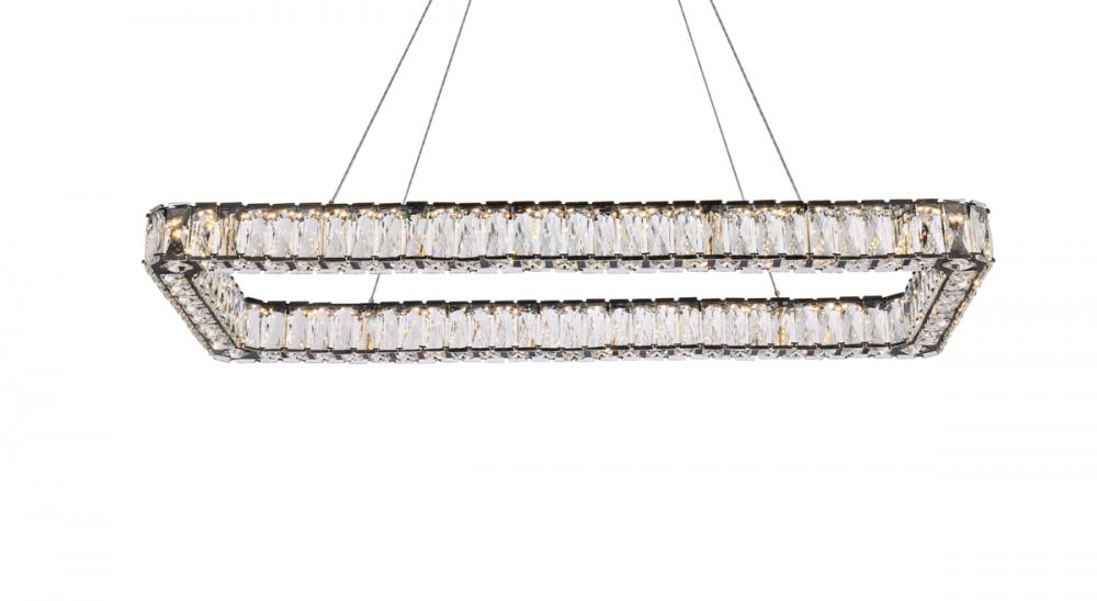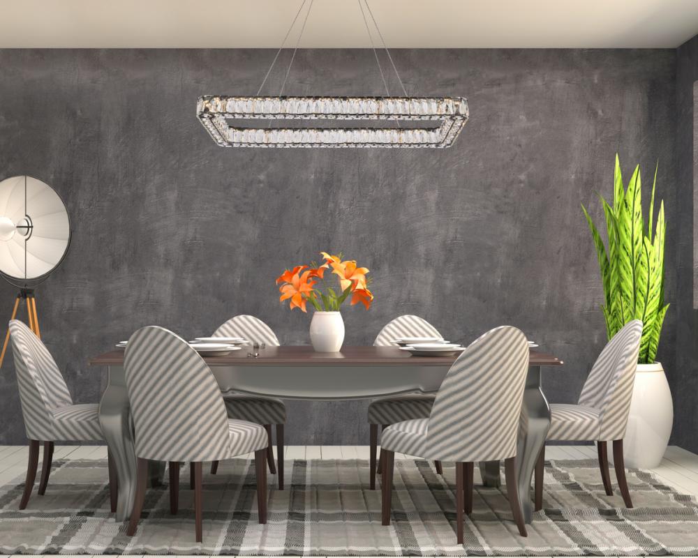 Diamonds are a girl’s best friend, and sparkling Monroe collection hanging fixtures take Marilyn’s famous lines to heart … for women and men alike. A minimal stainless-steel frame becomes dazzling when it is covered entirely with rectangular and square spectacularly faceted clear crystals. The oblong design hangs from almost invisible wires with brilliant integrated LED shining unseen from within. Stunning when placed in a dining room, kitchen, living room, or bedroom.
