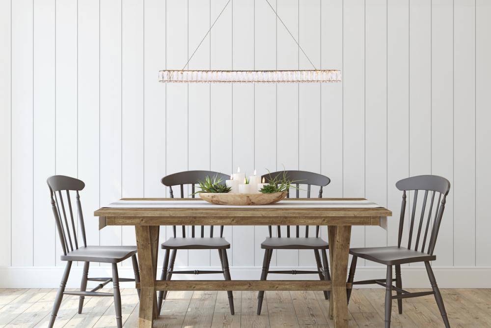 Diamonds are a girl’s best friend, and sparkling Monroe collection hanging fixtures take Marilyn’s famous lines to heart … for women and men alike. A minimal stainless-steel frame becomes dazzling when it is covered entirely with rectangular and square spectacularly faceted clear crystals. The oblong design hangs from almost invisible wires with brilliant integrated LED shining unseen from within. Stunning when placed in a dining room, kitchen, living room, or bedroom.