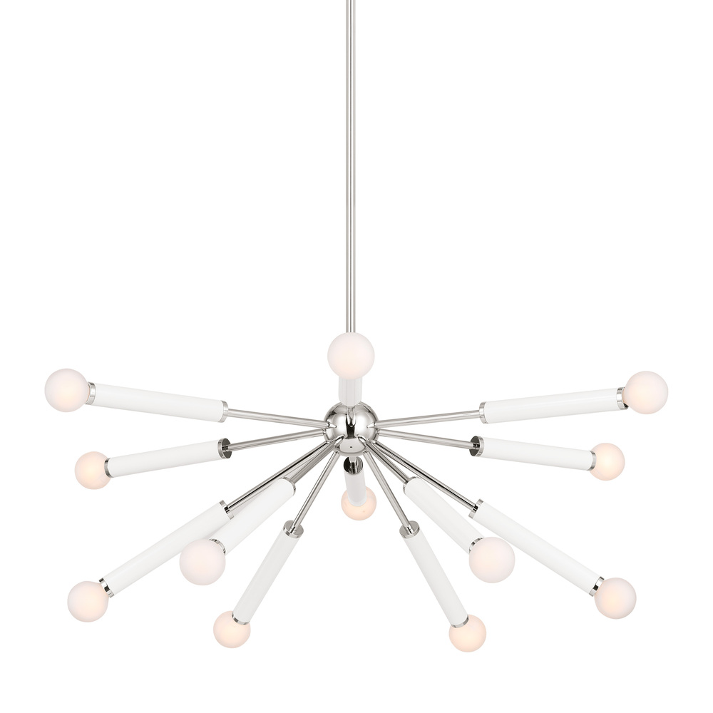 The Monroe medium sputnik chandelier is inspired by graphic enameled metal jewelry and decorative accessories from kate spade with a nod to late 50s atomic era colorful designs. Monroe exhibits clean lighting profiles and dressed them up with painted sections and metal accents.