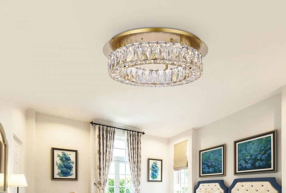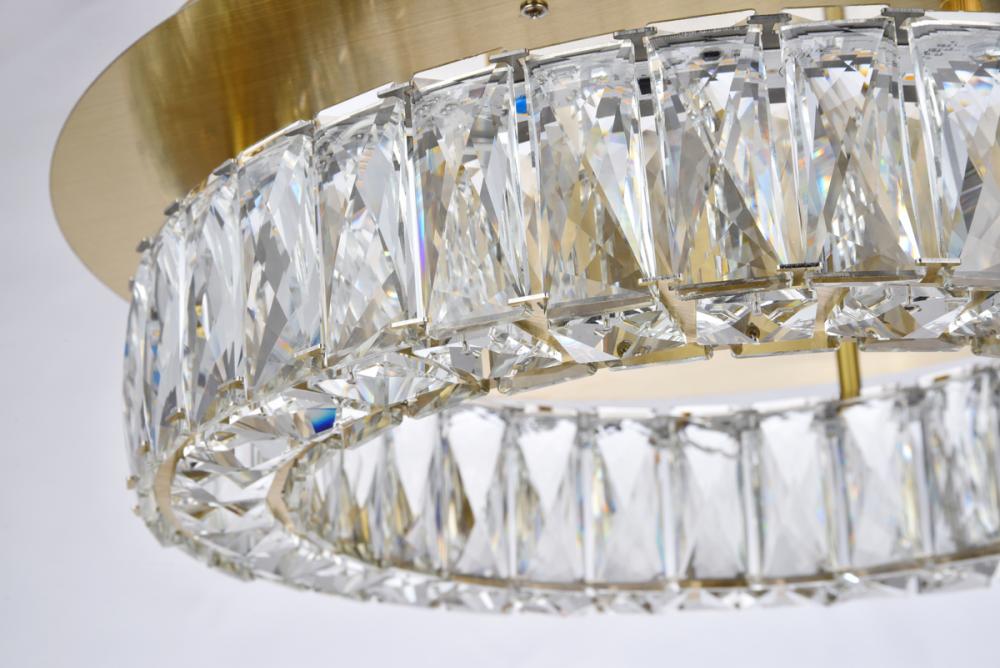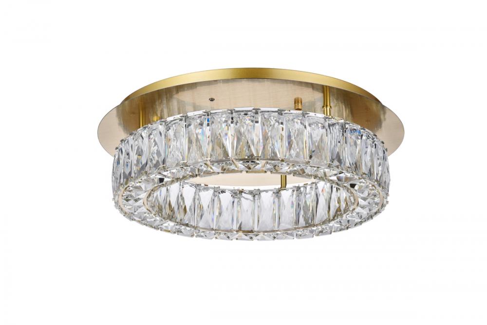 Diamonds are a girl’s best friend, and sparkling Monroe collection flush-mount lamps take Marilyn’s famous lines to heart… for women and men alike. A minimal ring-shaped stainless-steel frame in a smooth gold finish becomes dazzling when it is covered with rectangular and square spectacularly faceted royal-cut clear crystals. Brilliant integrated LED shine unseen from within, while the highly polished mounting fixture only increases the intensity of the light. Stunning when placed in a bathroom, foyer, living room, or bedroom.