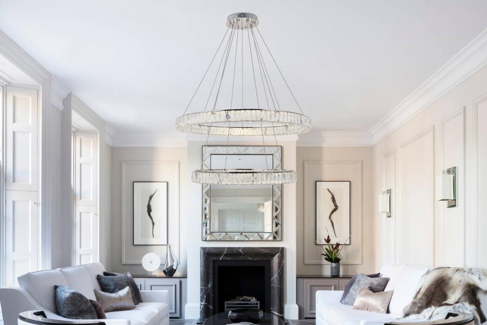 Diamonds are a girl’s best friend, and sparkling Monroe collection hanging fixtures take Marilyn’s famous lines to heart … for women and men alike. A minimal stainless-steel frame in a smooth chrome finish becomes dazzling when it is covered entirely with rectangular and square spectacularly faceted royal-cut clear crystals. The oblong design hangs from almost invisible wires with brilliant integrated LED shining unseen from within. Stunning when placed in a dining room, kitchen, living room, or bedroom.