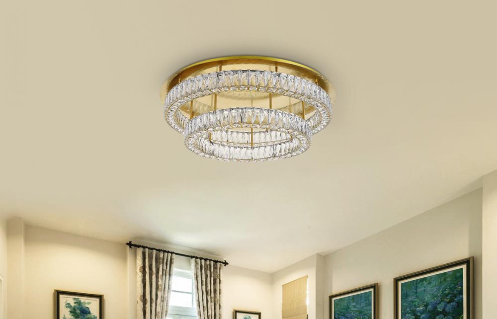 Monroe LED light Gold Flush Mount Clear Royal Cut Crystal