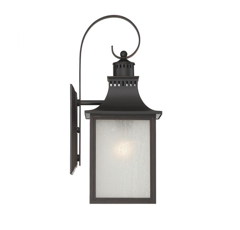 The Savoy House Monte Grande 1-light outdoor wall lantern is an elegant, clean-lined version of a classic box-shaped lantern. It’s a timeless and pleasing style from designer Karyl Pierce Paxton, a wall lantern that will illuminate the exterior of your home and welcome you and your guests with a familiar, traditional aesthetic. The English bronze finish is a wonderful neutral and the panels are made of beautiful pale cream seeded glass. One 40W standard size bulb provides plenty of soft light. This lantern is 7" wide, 17.75" high and UL rated for wet locations.