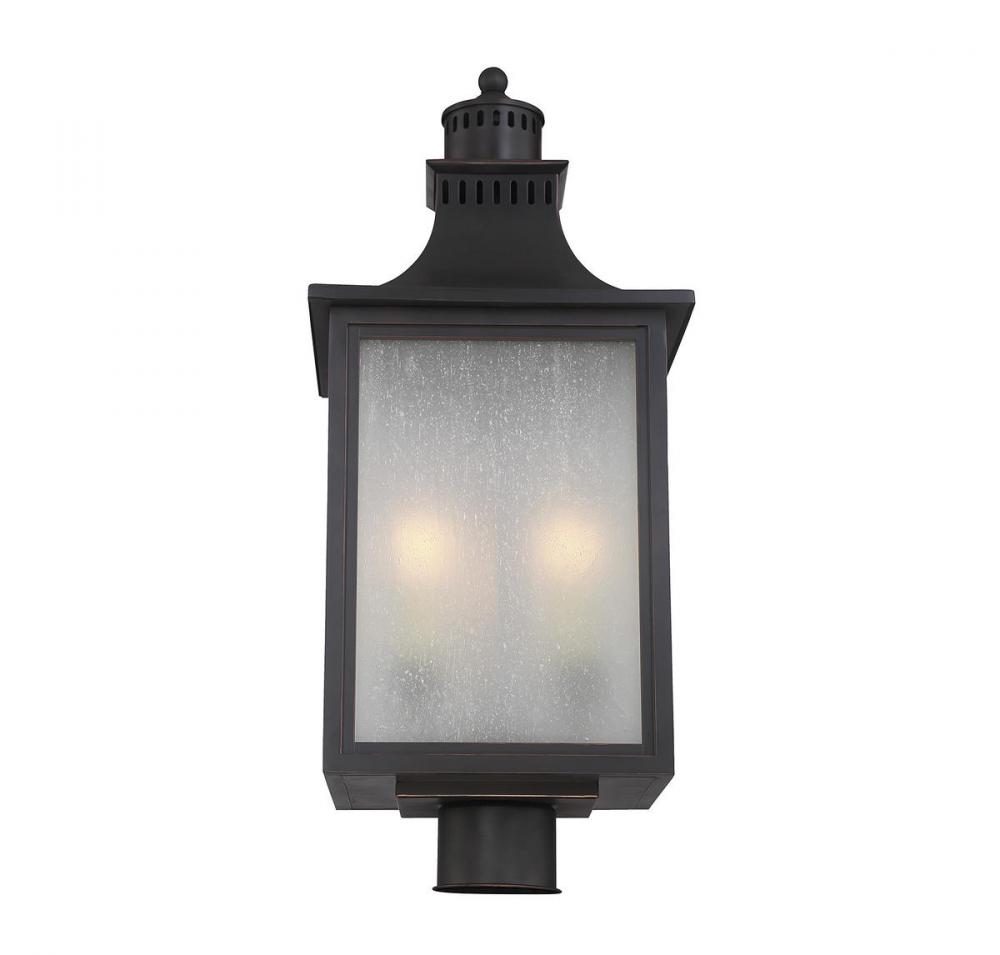 The Savoy House Monte Grande 3-light outdoor post lantern is an elegant, clean-lined version of a classic box-shaped lantern. It’s a timeless and pleasing style from designer Karyl Pierce Paxton, a wall lantern that will illuminate the exterior of your home and welcome you and your guests with a familiar, traditional aesthetic. The English bronze finish is a wonderful neutral and the panels are made of beautiful pale cream seeded glass. Three 40W candelabra size bulbs provide plenty of soft light. This lantern is 10" wide, 23.75" high and UL rated for wet locations.