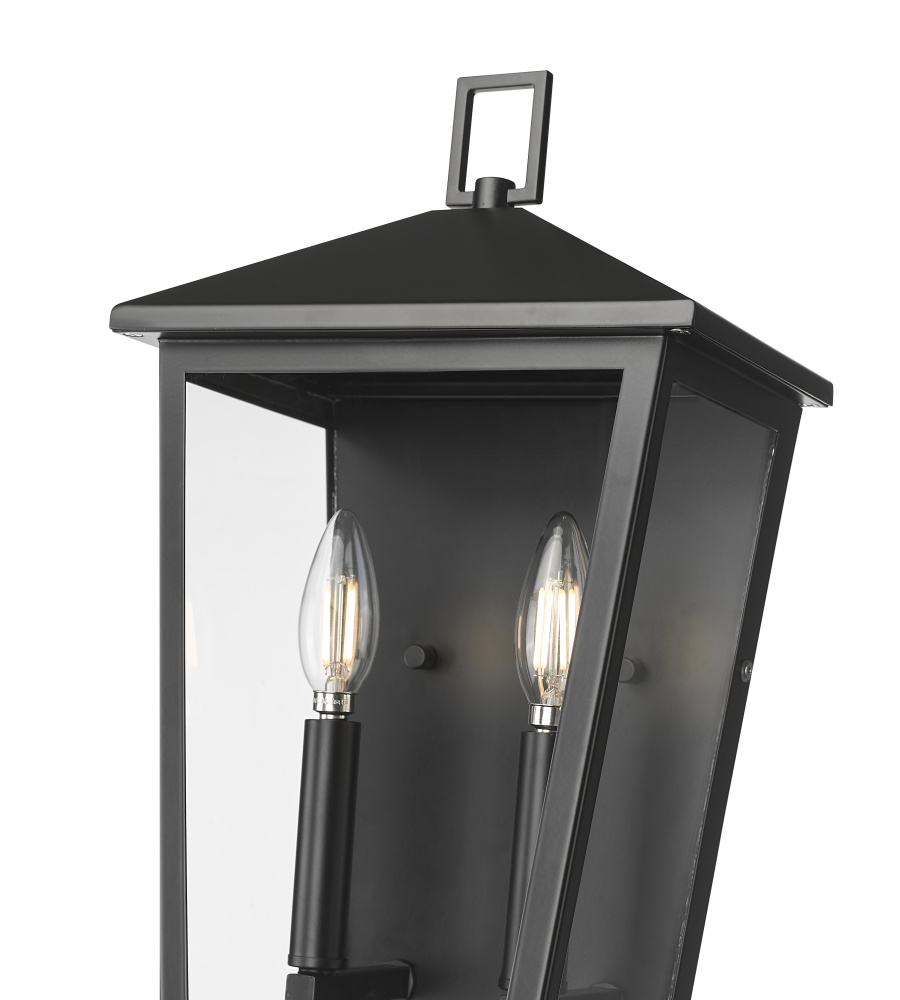 The classic lantern profile receives a decidedly modern makeover with the Munger Family of outdoor lighting. These stately fixtures feature angular details creating a tailored look and are punctuated with crystal clear glass panels. Finished in durable powder coat black, the family is available as 1- or 2-light sconces, 1-light hanging lantern, and 1-light post lamp. From the entryway, down the walk, and to the end of the drive, the overall effect is one of understated grandeur.