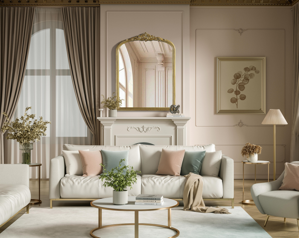 The mirror features a softly curved arch at the top, adding a refined and timeless touch to any space.
