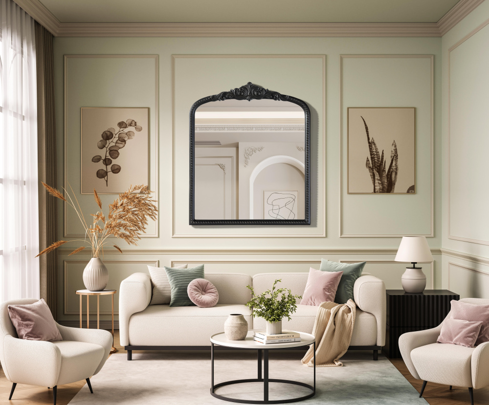 The mirror features a softly curved arch at the top, adding a refined and timeless touch to any space.