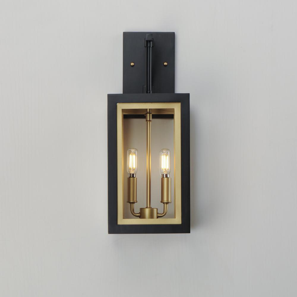 Two-tone frames of Black or White with internal Gold frames provides a neoclassical approach to the squared coach lantern. The sconces jut out from the wall on well-defined trusses that add a contemporary element. Delivering a classic design that suits mos