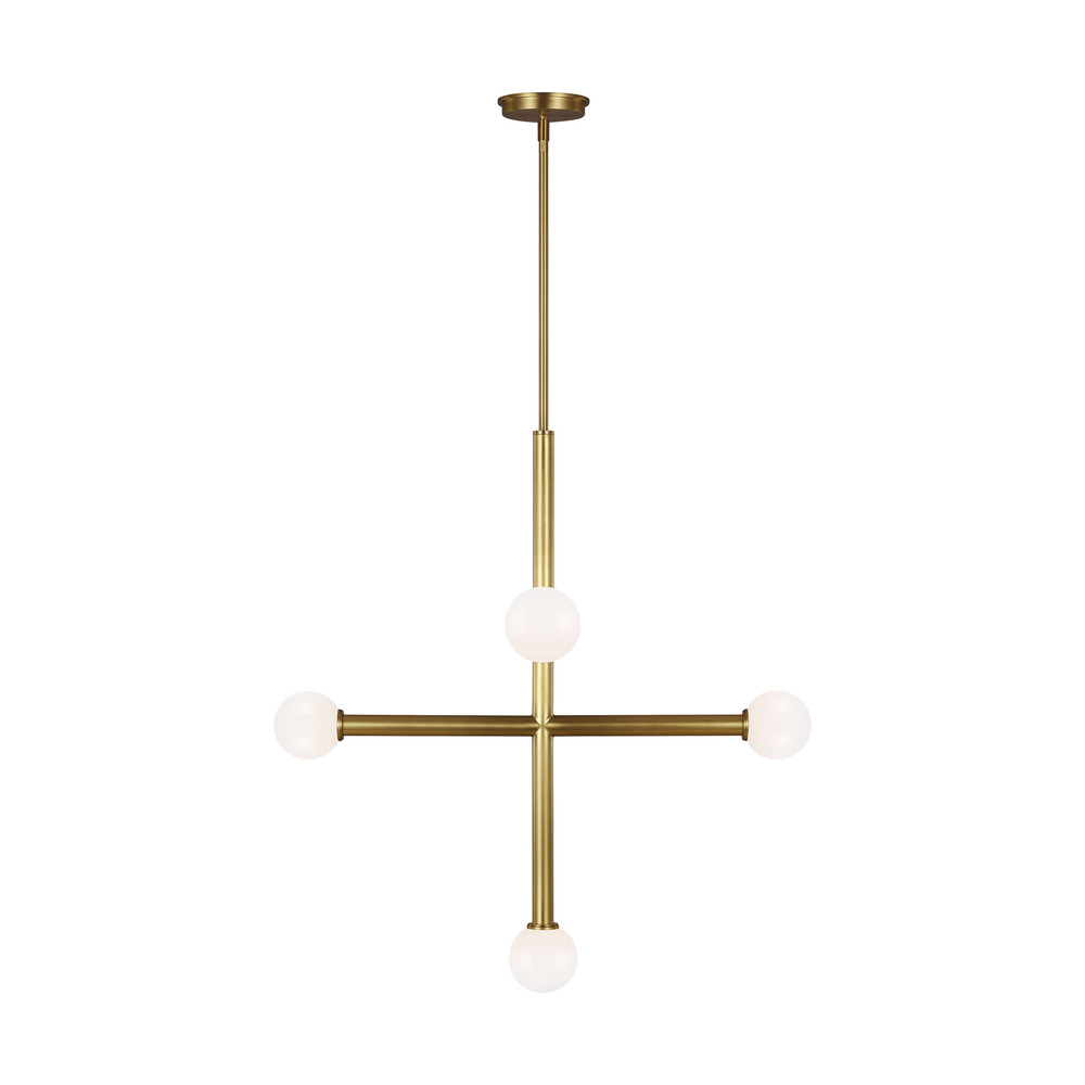 The Nodes five light linear chandelier by Kelly Wearstler supplies ample lighting for your daily needs, while adding a layer of today's style to your home's décor. Nodes task, ceiling and wall lighting is minimal yet bold, highlighting Kelly's distinctive juxtaposition of mixed-materiality and curvilinear form. Light radiates from milk glass globes set against metal discs. All fixtures can be used or without the discs. The cast canopy is available in Burnished Brass or Midnight Black. Hanging fixtures within this family feature black fabric cords, while pivot sconces can be cord and plug or hard wire.