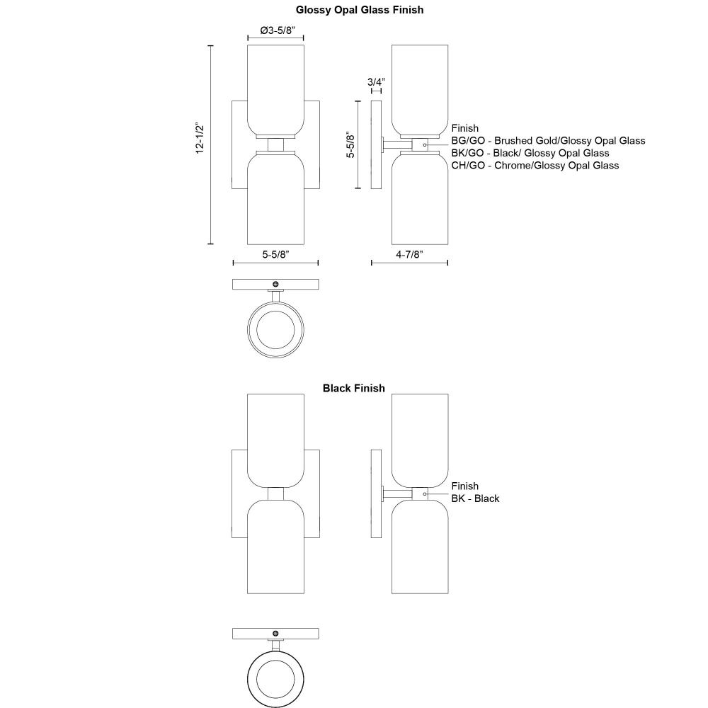 Kuzco Lighting Inc WS57712-BG/GO - Nola 3-in Brushed Gold/Glossy Opal Glass Socket Wall Sconce