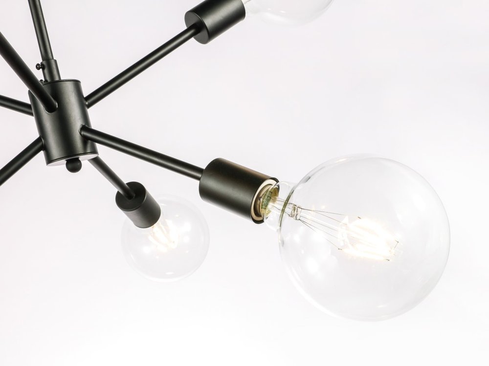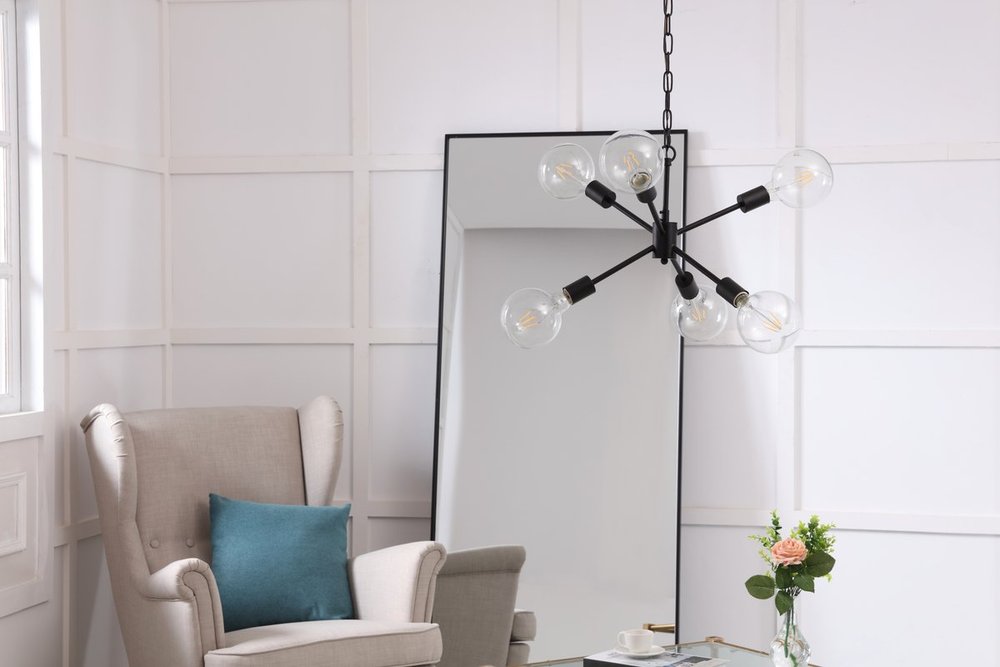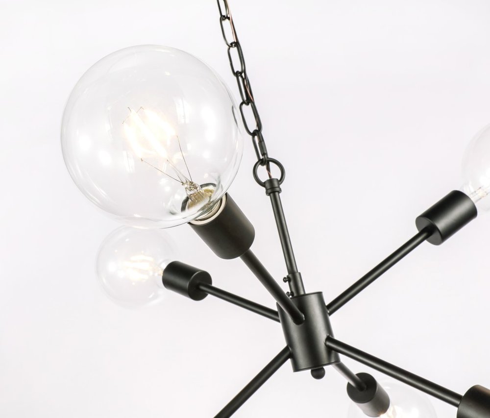 The Nolan collection pendant lamp illuminates in all directions, creating a wonderful display of artistic style and brilliance. If your home was a modern art exhibit, then you have curated the best possible piece of art--also known as the Nolan pendant lamp. With six lights pointing in different directions, and the black or brass finish gleaming in modern beauty, you won't have to worry about being "up to date" because you already are (light bulbs not included).
