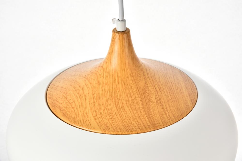 Set the right mood in a kitchen, office, or bedroom with Nora collection hanging lights. Sleek teardrop shaped or larger chalice-shaped aluminum shades come in a smooth frosted white finish; larger lamps feature a wood detail. Contrasting white finish on the inside of the shade gives these pendant lamps just the right amount of attitude.