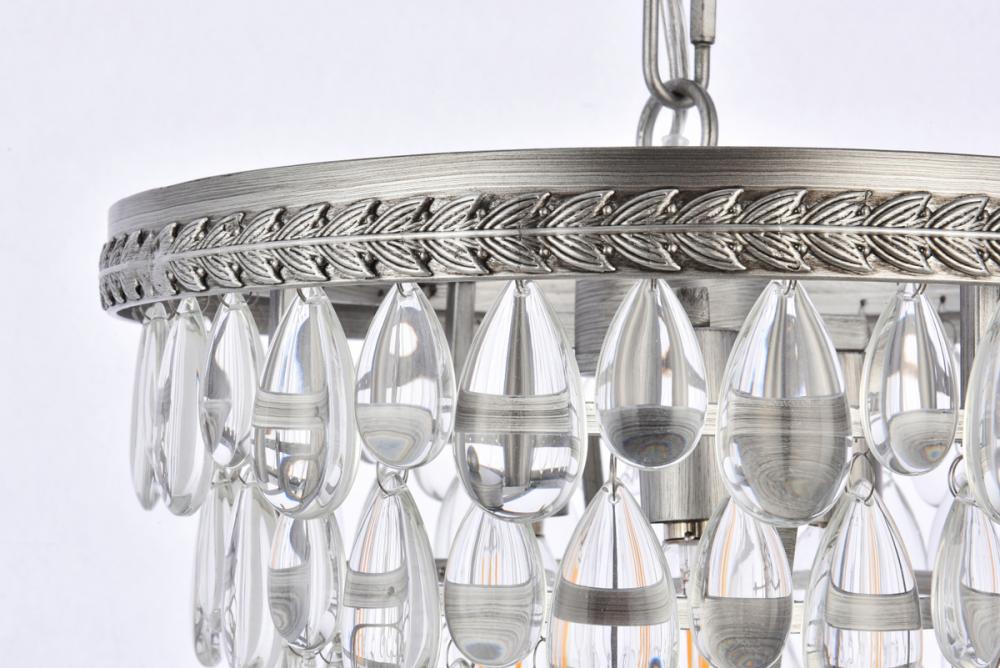Like the sun setting on a frozen lake, this collection shimmers with tiers of icy crystals reflecting the soft glow of the candelabras. True to its Nordic namesake, the cascades of royal-cut clear crystals complement the etched antique-Silver-finished frame. Suspended by an elegantly looped chain that draws the eye to the cool sheen below.