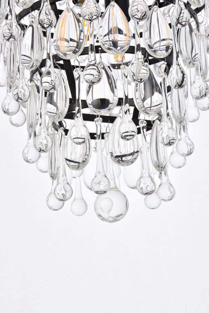 Like the sun setting on a frozen lake, this collection shimmers with tiers of icy crystals reflecting the soft glow of the candelabras. True to its Nordic namesake, the cascades of royal-cut clear crystals complement the etched black finished frame. Suspended by an elegantly looped chain that draws the eye to the cool sheen below.