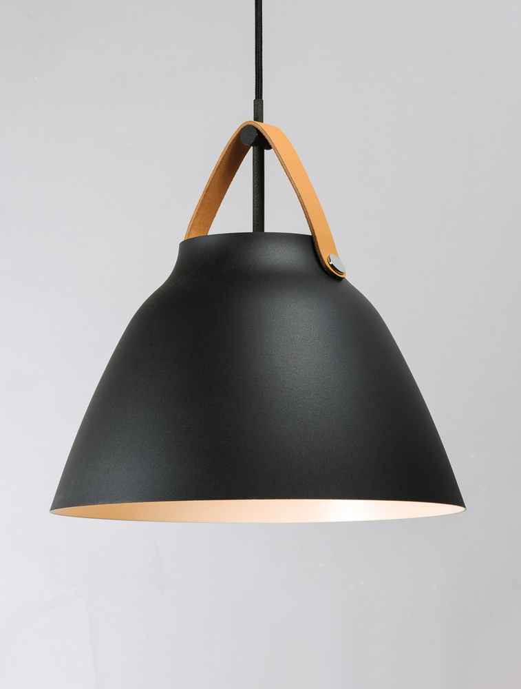 Inspired by classic Scandinavian design, these metal spun pendants of Black, White and Brushed Platinum feature mixed materials such as opal white glass or natural elements like Walnut finished wood and leather straps.