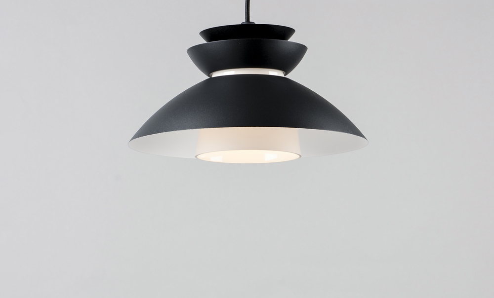 Inspired by classic Scandinavian design, these metal spun pendants of Black, White and Brushed Platinum feature mixed materials such as opal white glass or natural elements like Walnut finished wood and leather straps.