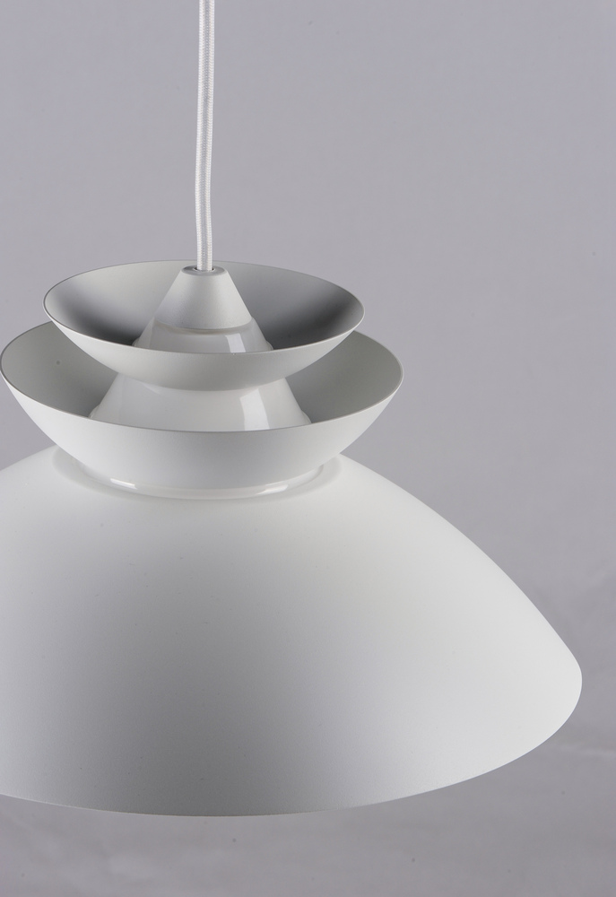 Inspired by classic Scandinavian design, these metal spun pendants of Black, White and Brushed Platinum feature mixed materials such as opal white glass or natural elements like Walnut finished wood and leather straps.