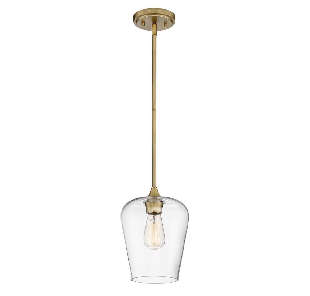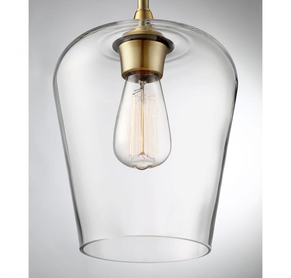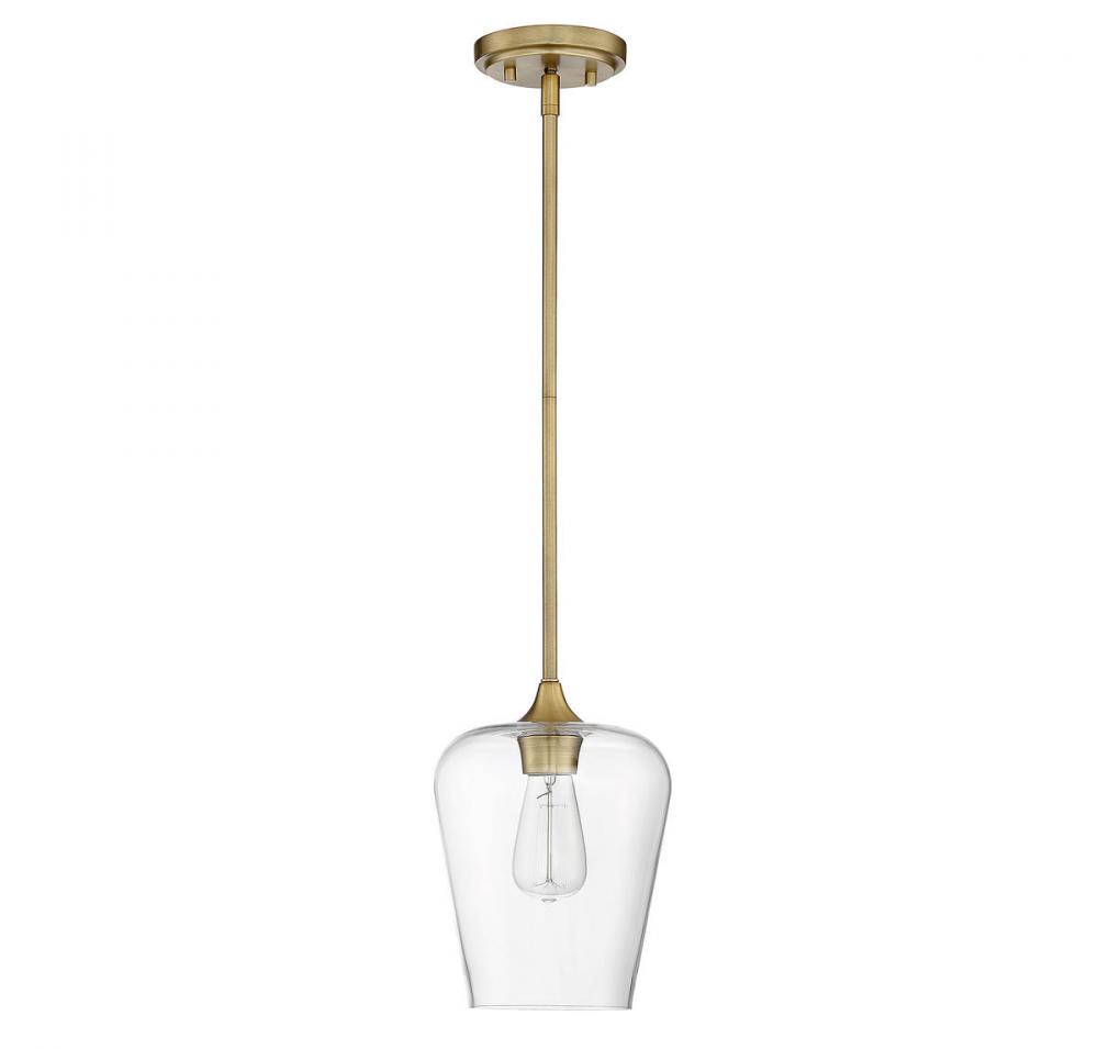 Get a pendant look with understated elegance when you get the Savoy House Octave 1-light pendant. It features a shade of curved clear glass, minimal detailing and a rich warm brass finish. Pendants are extremely versatile and can fit in many different spaces, such as kitchens, family rooms, great rooms, foyers, entryways, offices, bedrooms and bathrooms. The hanging height is adjustable and this pendant can be used on a sloped ceiling. Since the bulb is exposed, try using a stylized bulb (not included) like Edison style for a different twist! The brass finish can be paired with brass hardware or mixed with hardware in other finishes. Try the Octave with glam, transitional or contemporary style rooms for a chic look. When you choose a Savoy House lighting fixture, you can be certain you've selected a piece that will withstand the test of time.