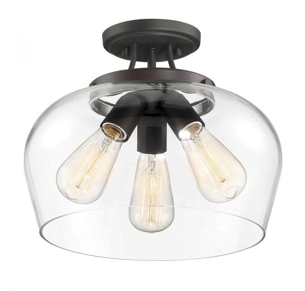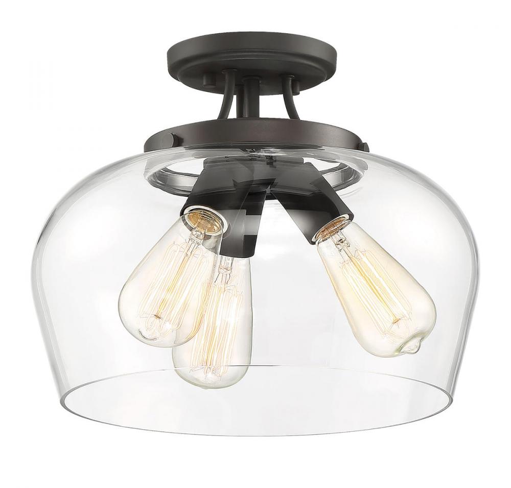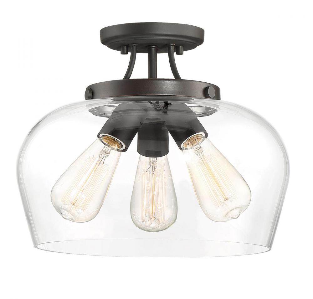 Find close-to-ceiling light with understated elegance when you get the Savoy House Octave 3-light ceiling semi-flush mount. It features a shade of curved glass, minimal detailing and an English bronze finish. Semi-flush mounts can be used on the ceiling of pretty much any interior room, including foyers, hallways, stairways, closets, bathrooms, bedrooms, kitchens and more! Bulbs not included. Try using stylized bulbs like Edison or tubular for a different look! The English bronze finish can be paired with bronze hardware or mixed with hardware in other finishes. Try the Octave with glam, transitional or contemporary style rooms for a chic look. When you choose a Savoy House lighting fixture, you can be certain you've selected a piece that will withstand the test of time.