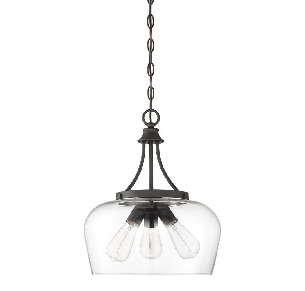 Get a pendant look with understated elegance when you get the new Savoy House Octave 3-light pendant. It features a single large shade of curved clear glass, minimal detailing and a bold English bronze finish. Pendants are extremely versatile and can fit in many different spaces, such as kitchens, family rooms, great rooms, foyers, entryways, offices, bedrooms and bathrooms. Because this pendant is chain-hung, you can use as much or as little chain as you need to fit your specific hanging height needs, and this pendant can be used on a sloped ceiling. Since the bulbs are exposed, try using stylized bulbs (not included) like Edison style for a different twist! The English bronze finish can be paired with bronze hardware or mixed with hardware in other finishes. Try the Octave with glam, transitional or contemporary style rooms for a chic look. When you choose a Savoy House lighting fixture, you can be certain you've selected a piece that will withstand the test of time.