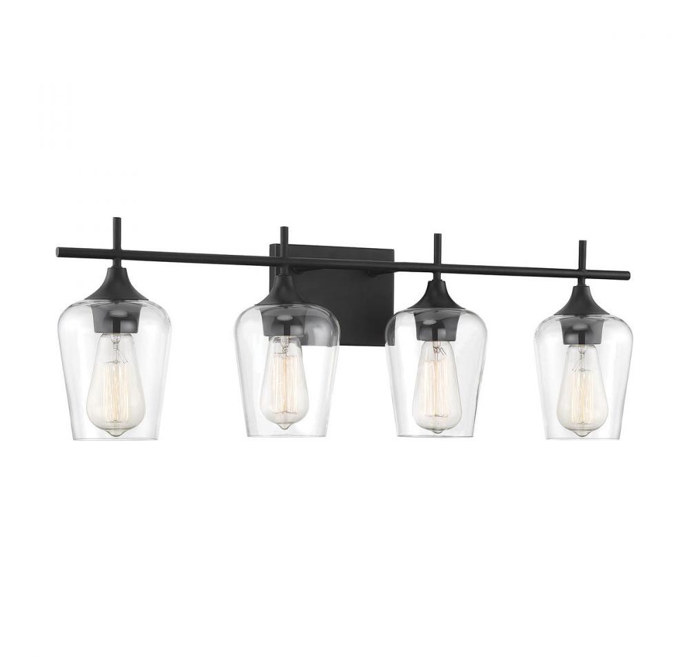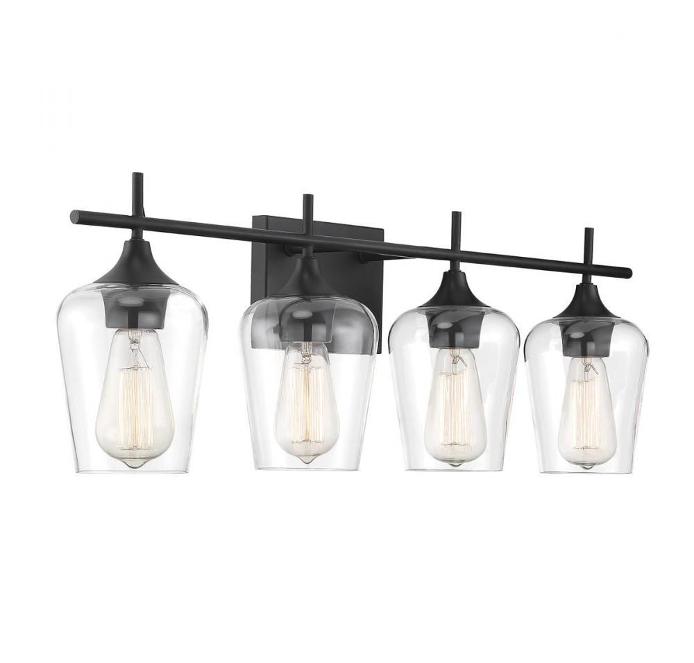 The Octave 4-light bath bar from Savoy House has understated elegance. It features large curved shades of clear glass, minimal detailing and a matte black finish. It may be mounted as either uplight or downlight. Bath bar lights are a classic choice for illuminating vanity mirrors in bathrooms big and small. Because the bulbs are exposed, try using stylized bulbs (not included) such as Edison for a different look! The matte black finish can be paired with black hardware or mixed with hardware in other fixtures. Try the Octave with glam, transitional or contemporary style rooms for a chic look. When you choose a Savoy House lighting fixture, you can be certain you've selected a piece that will withstand the test of time.