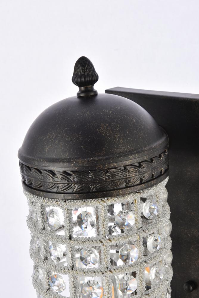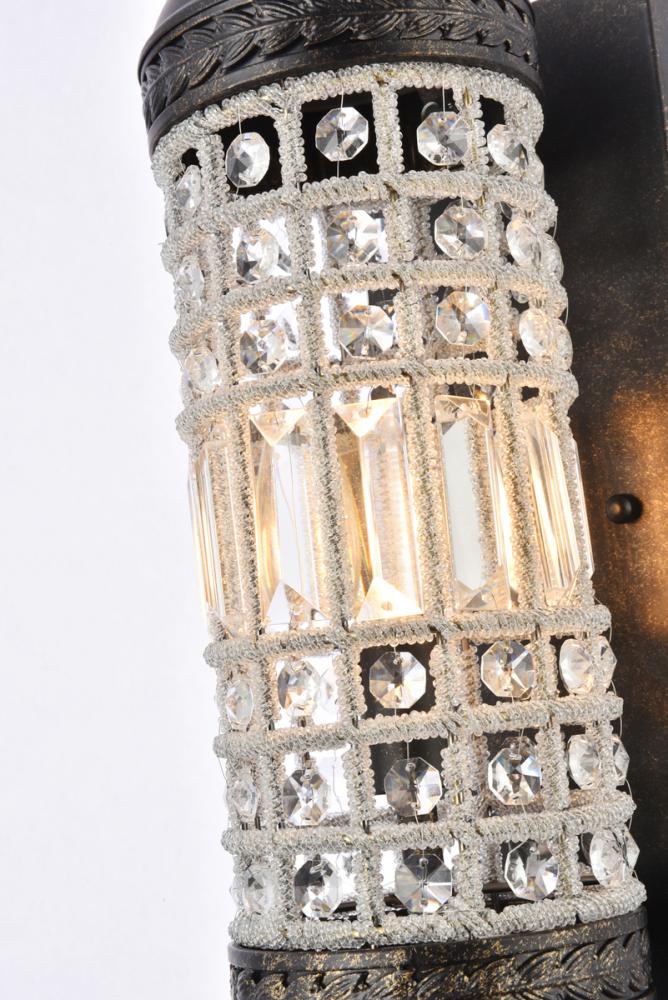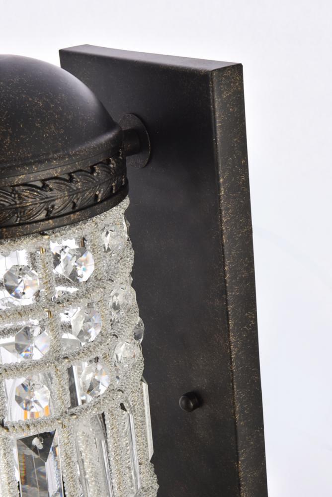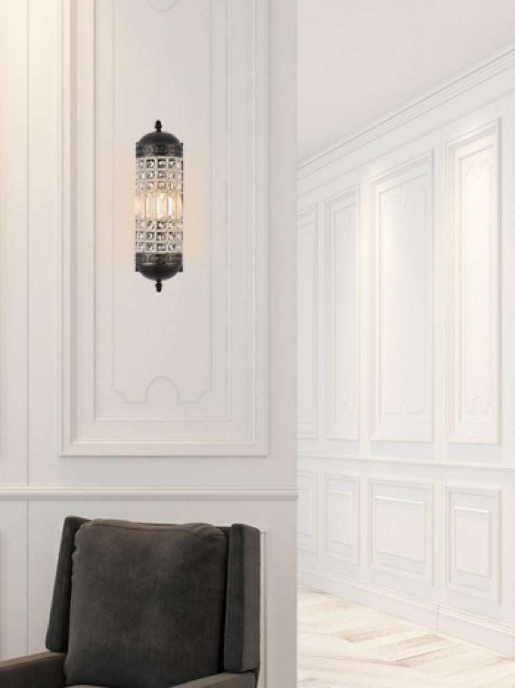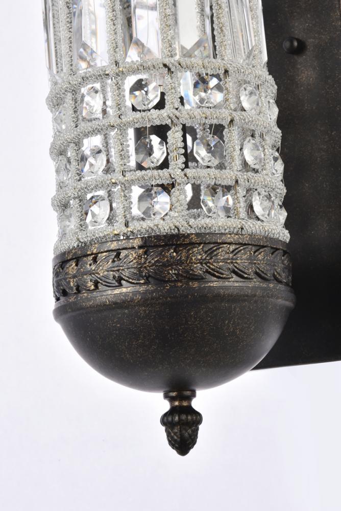A welcoming glow to greet your guests, Olivia wall sconces add warmth and sophistication to a porch, foyer, or hallway. Multifaceted, royal-cut clear crystals create a brilliant, rectangular exterior. Steel rims and backplate available in a dark-bronze or French-gold finish give these lamps a traditional touch.