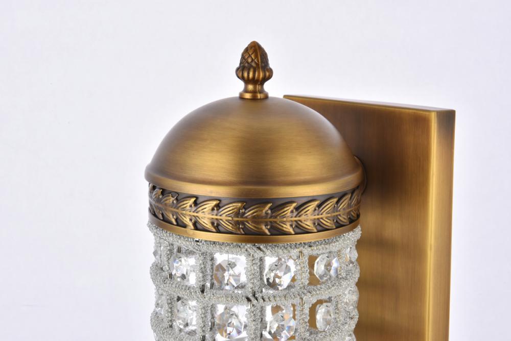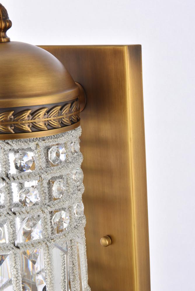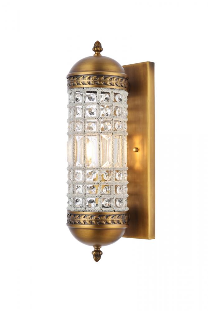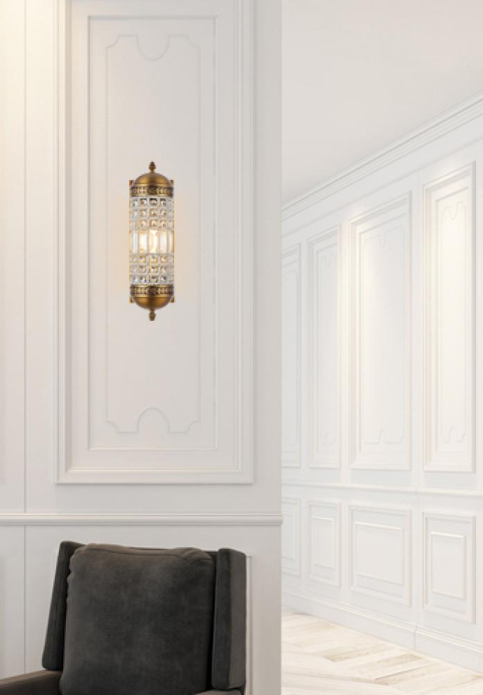 A welcoming glow to greet your guests, Olivia wall sconces add warmth and sophistication to a porch, foyer, or hallway. Multifaceted, royal-cut clear crystals create a brilliant, rectangular exterior. Steel rims and backplate available in a dark-bronze or French-gold finish give these lamps a traditional touch.
