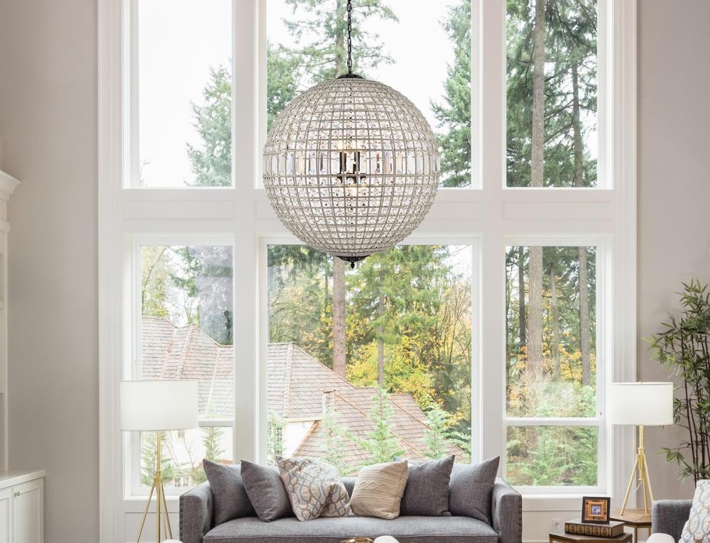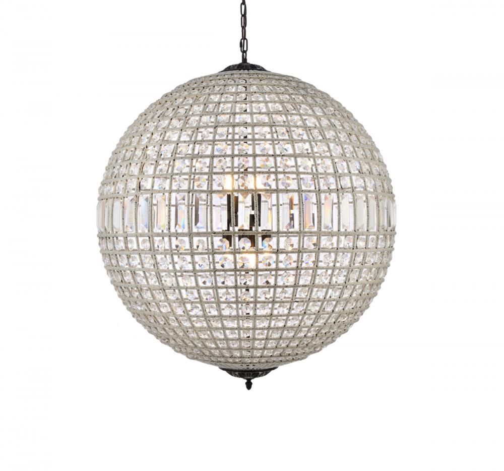 Straightforward form and effortless beauty make Olivia hanging lamps the crowning glory of your dining room, living room, kitchen, bathroom, or stairwell. The classic sphere design sparkles with a shell of multifaceted, royal-cut clear crystals. Steel rims and chain available in dark-bronze or French-gold finish add vintage flavor to contemporary style.